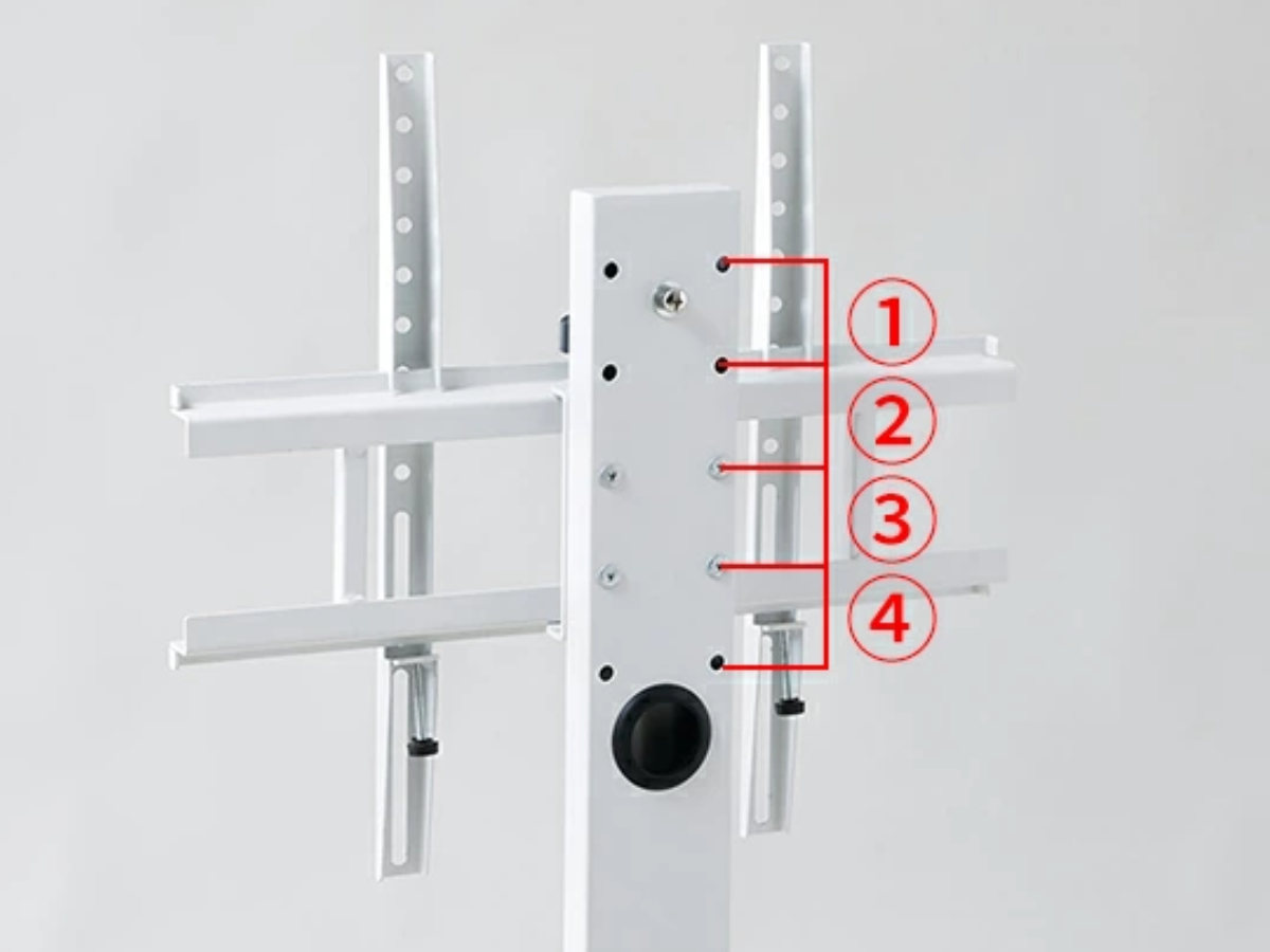 テレビの高さは4段階に調整可能(5cmピッチ)。床でのリラックスタイムから、ソファ・ベッド・ダイニングまで、シーンに合わせて見やすい高さに設定できます。