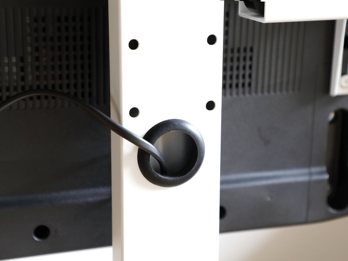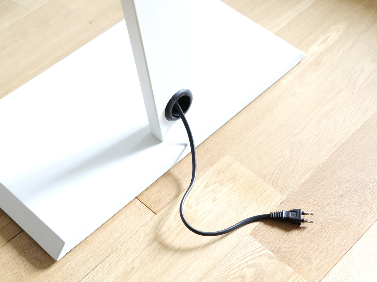 支柱の上下にあるコードホールで配線をまとめ、正面から見ても美しく、すっきりした印象に仕上がります。
