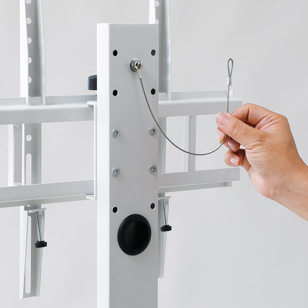 転倒防止ワイヤー付きで、地震や揺れなどの万が一の際もテレビやスタンドが倒れにくく、安全に使用できます。