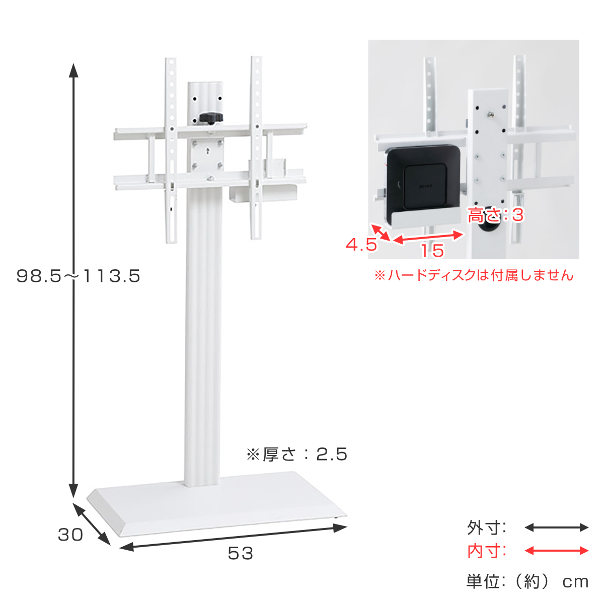 テレビスタンド 32~50型対応 壁寄せ 首振り 高さ調整 ( テレビ台 スタンド 伸縮 壁面 4段階調節 収納ホルダー付 テレビボード TV台 転倒防止ワイヤー付 ブラック ホワイト ) 【ホワイト】