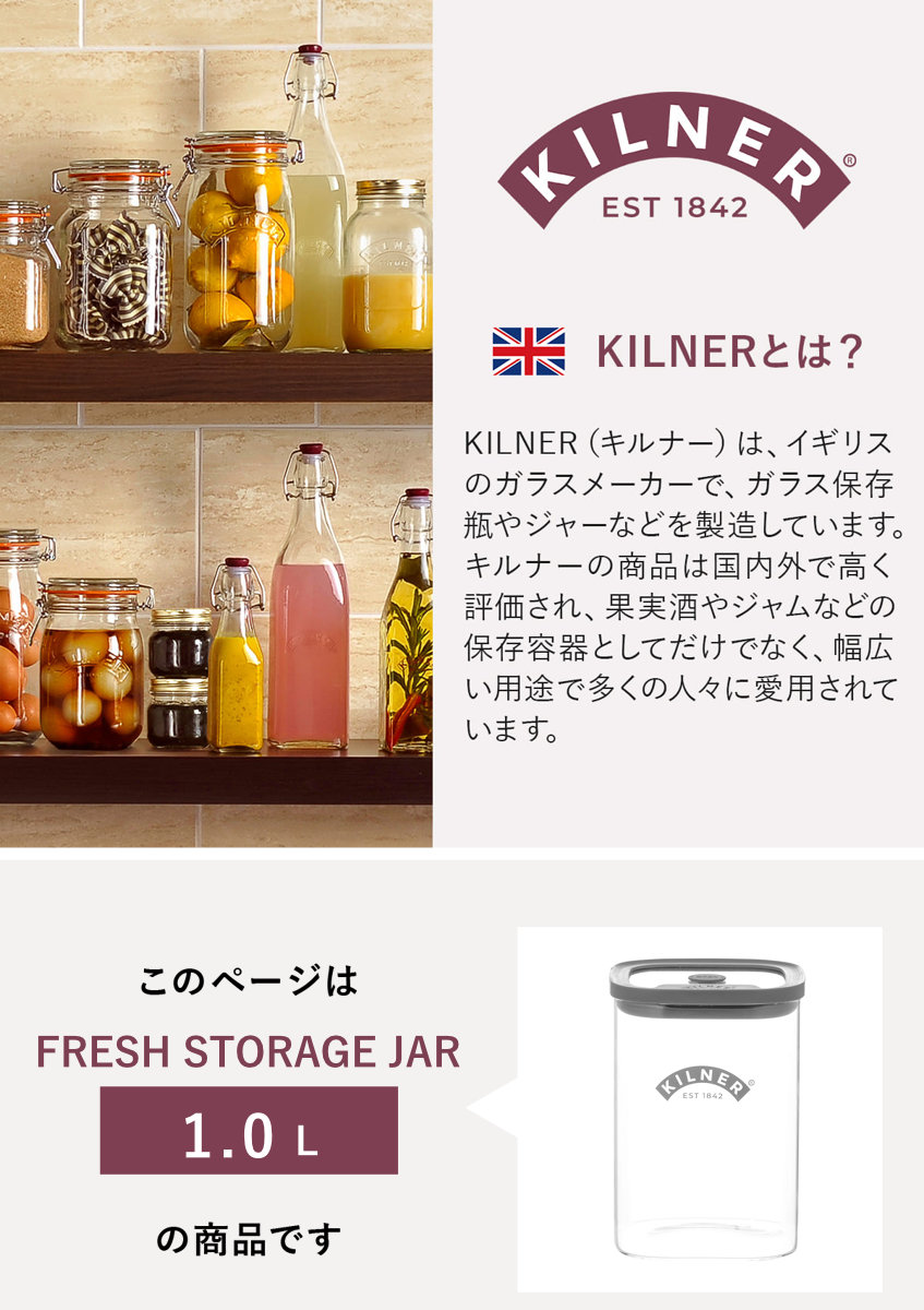 保存容器 KILNER 1L Fresh Storage Square Jar ( キルナー キャニスター 密閉 密閉容器 ガラス ガラス保存容器 1000ml 密閉保存 ジャー 保存瓶 調味料 角型 おしゃれ )