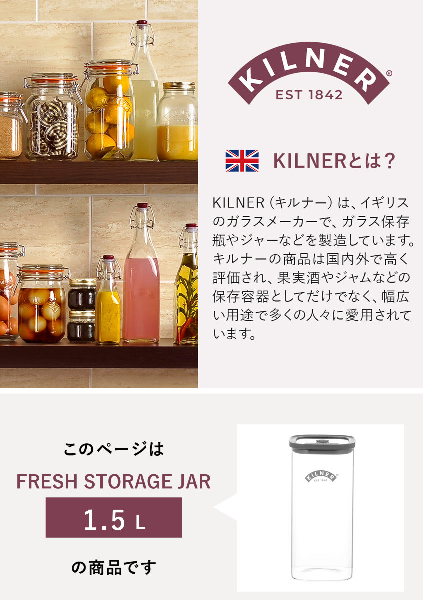 保存容器 KILNER 6個セット 1.5L Fresh Storage Square Jar ( キルナー キャニスター 密閉 密閉容器 ガラス ガラス保存容器 1500ml 密閉保存 ジャー 保存瓶 調味料 角型 おしゃれ )