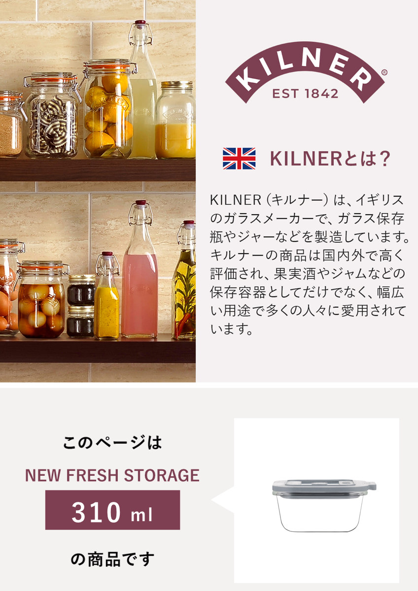 保存容器 KILNER 310ml New Fresh Storage Square ( キルナー 密閉 密閉容器 ガラス ガラス保存容器 電子レンジ対応 食洗機対応 オーブン対応 密閉保存容器 密閉保存 角型 食品保存容器 食品保存 )
