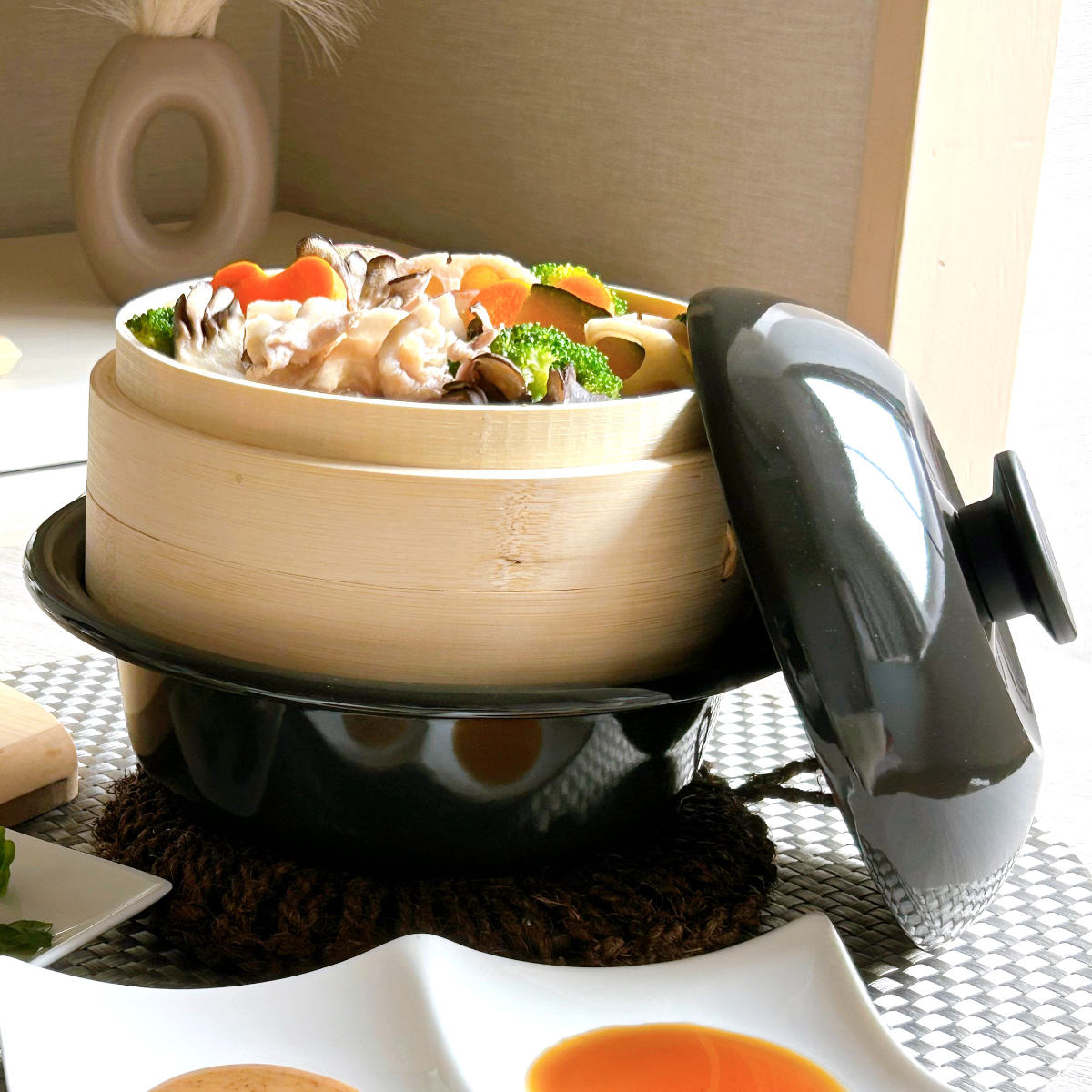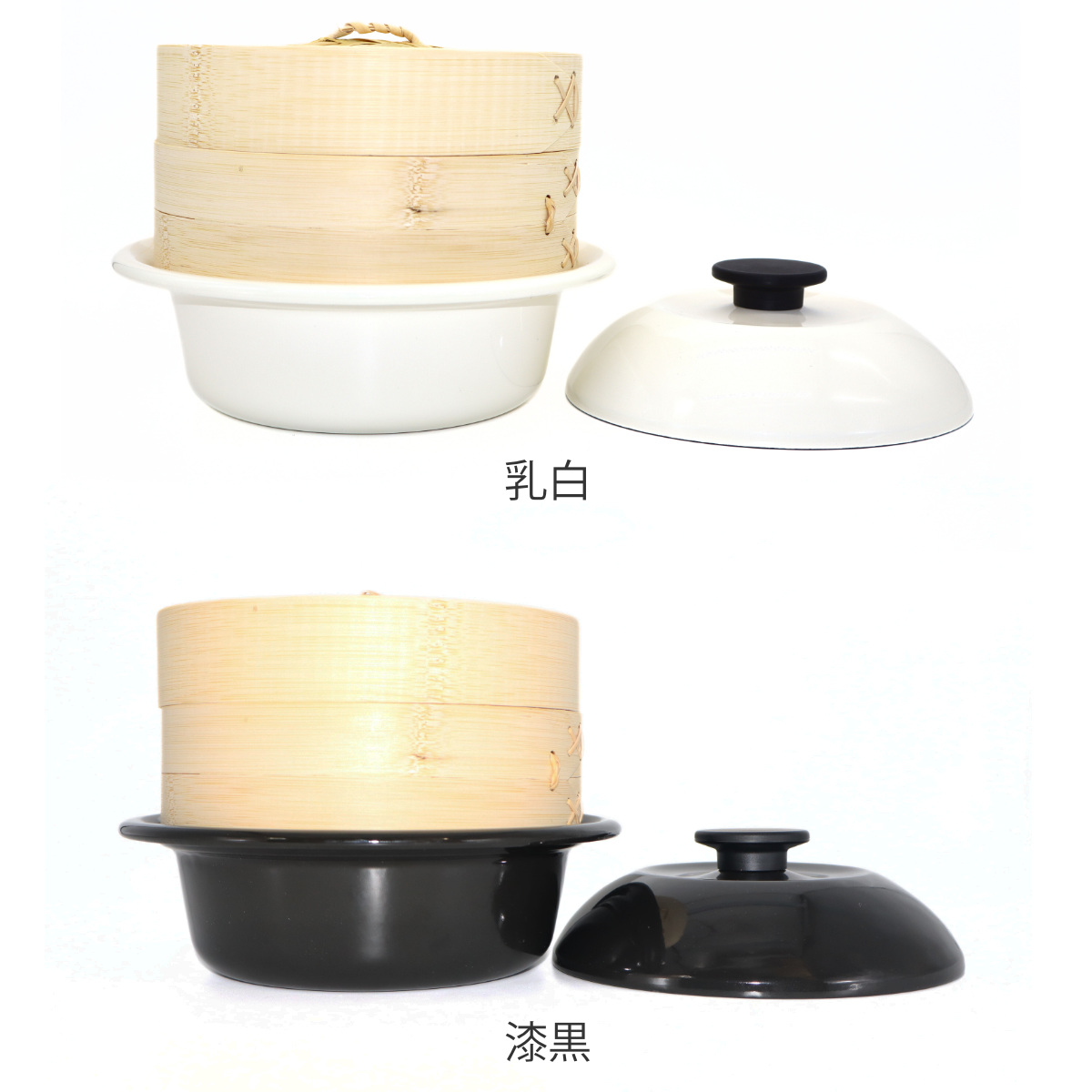 せいろ付きホーロー鍋 19cm IH対応 ホーロー蓋付き ココナベせいろセット ( せいろ鍋 セット 両手鍋 ホーロー ガス火対応 蒸し器 セイロ 蒸籠 竹 ミニ ほうろう鍋 蓋付き 白 黒 ) 【漆黒】