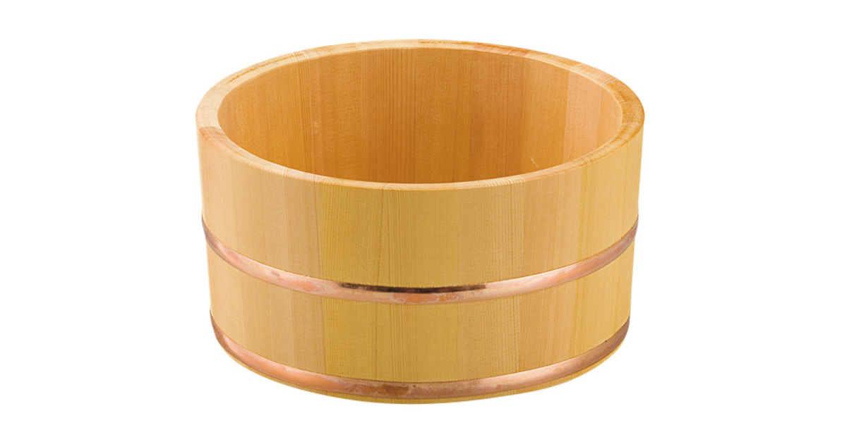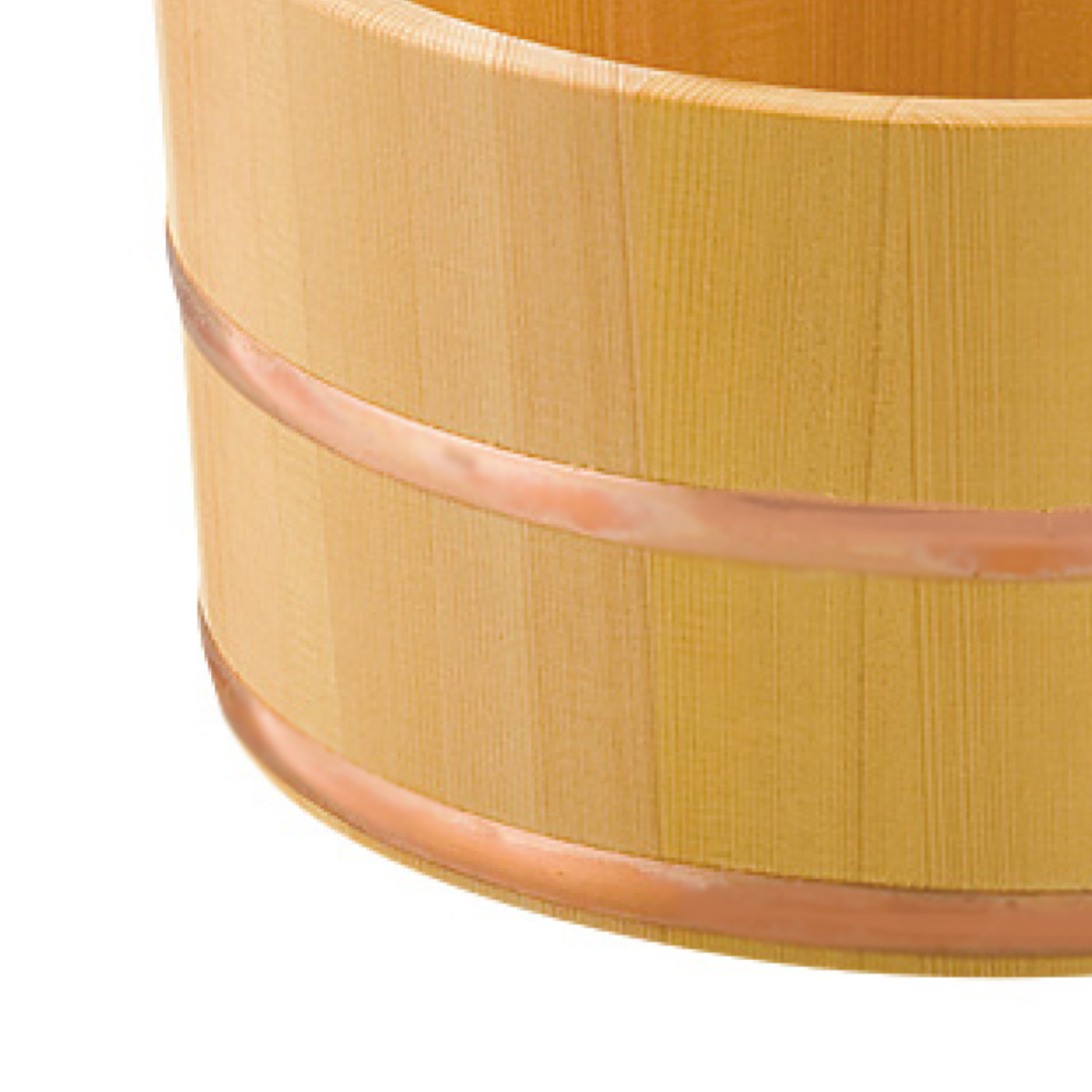 ![]() 湯桶 タカミゾ加工 ステンレスタガ | ![]() 湯桶 樹脂タガ |