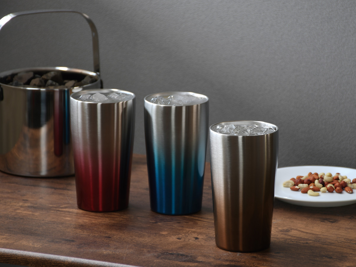 居酒屋気分を手軽に楽しめるビンテージバーシリーズです。落ち着いた風合いのデザインが、家呑みの時間をおしゃれに演出します。保温・保冷の両方に対応しているため、ビールやハイボールはもちろん、温かい飲み物にもお使いいただけます。