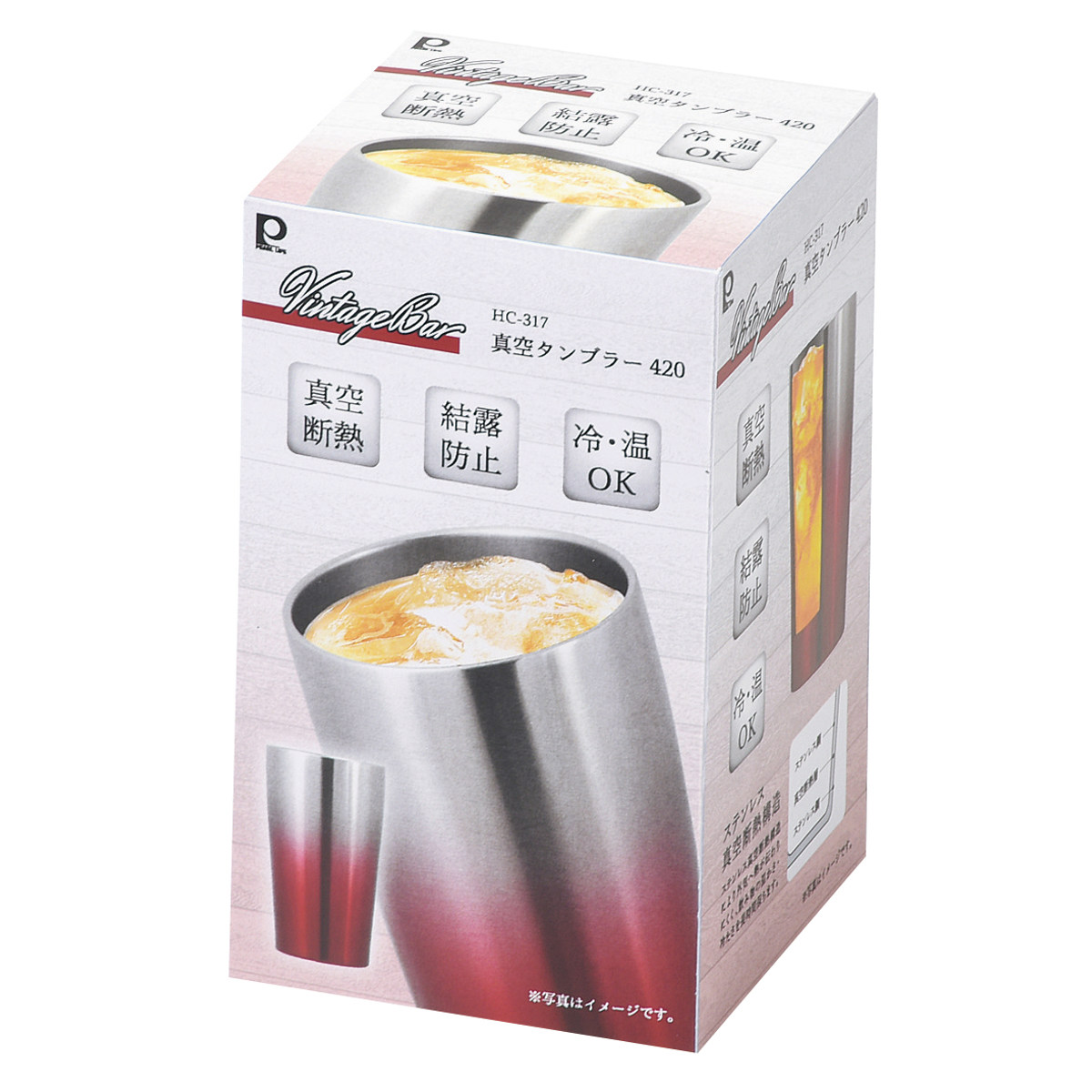 タンブラー ビンテージバー 真空タンブラー 420ml ( ステンレス 保冷 保温 コップ カップ ビール 結露しにくい 食器 おしゃれ シンプル スタイリッシュ ) 【サテン×レッド】