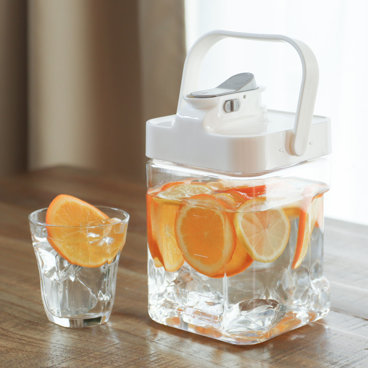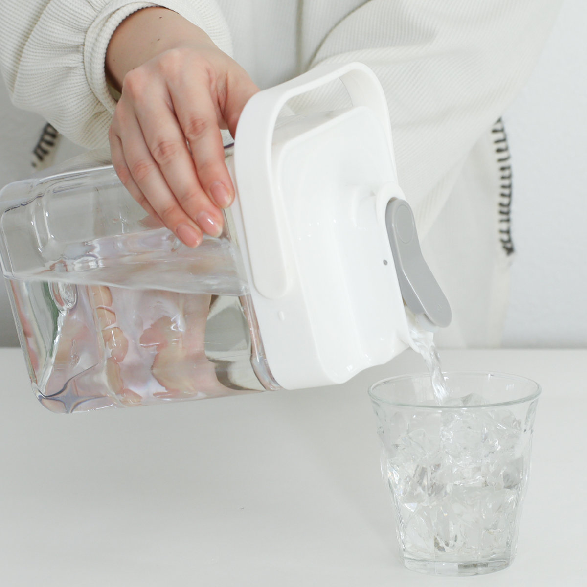 横置きも縦置きもできる冷水ポットです。冷蔵庫で横置きのまま注げるので、わざわざ重たい冷水筒を冷蔵庫から取り出さなくても注ぐことができます。小さなお子さまでも自分で入れやすいので、留守番中でも安心して使えます。