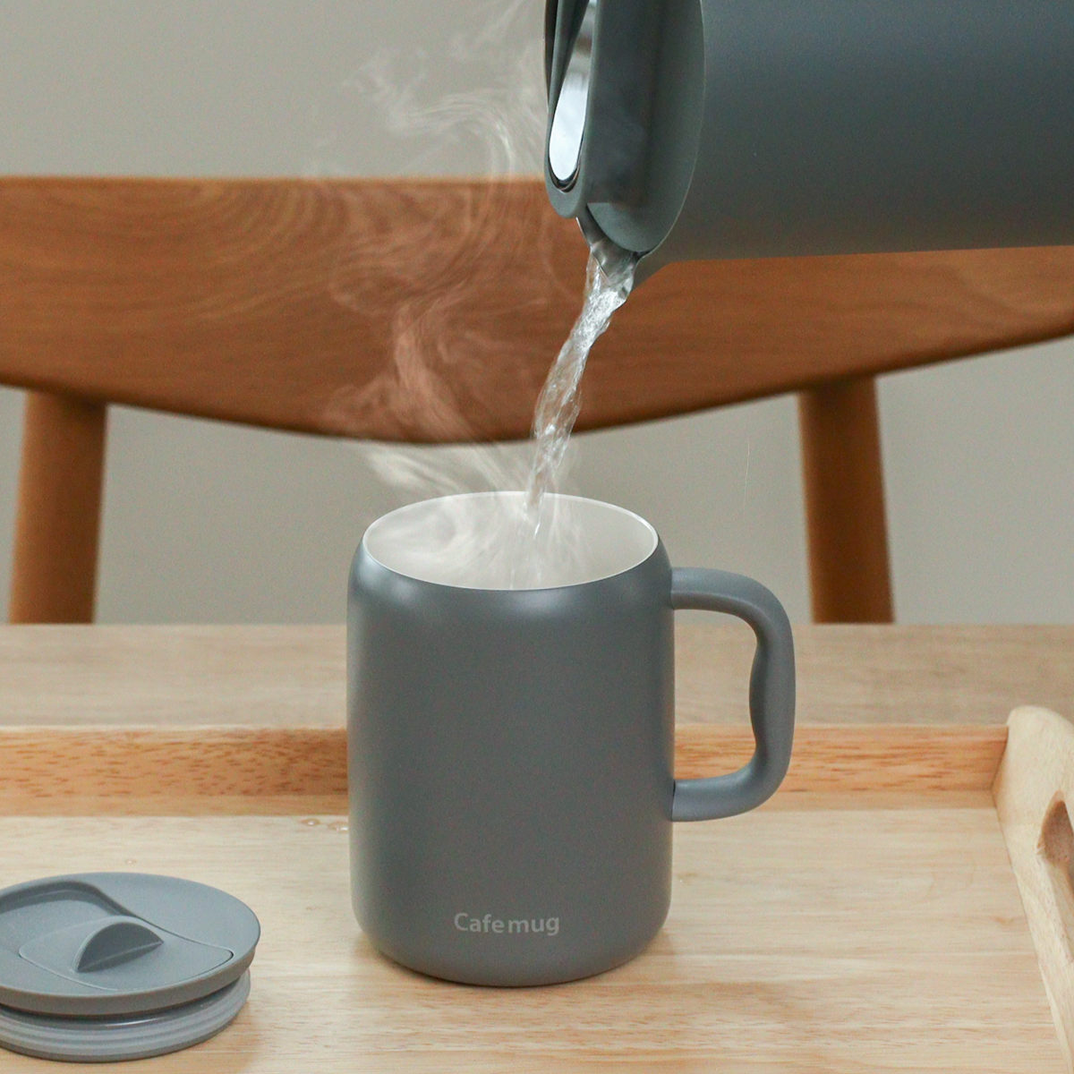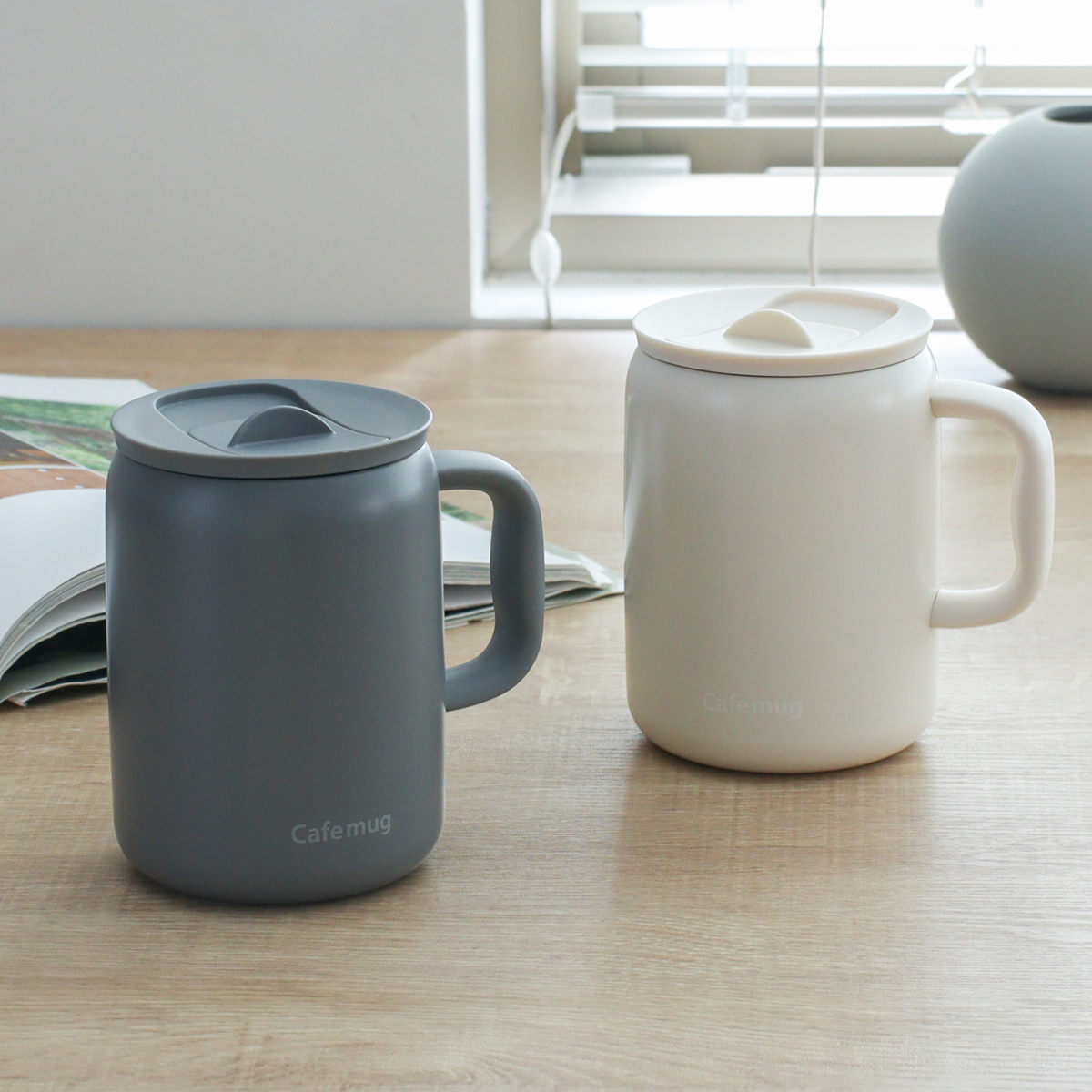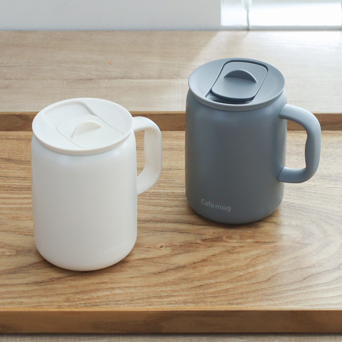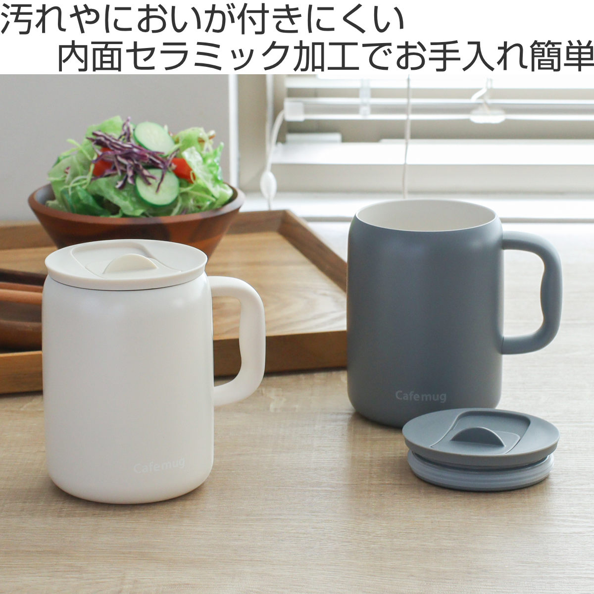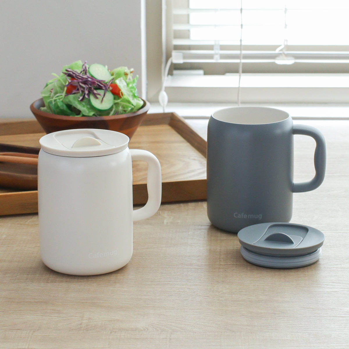 マグカップ カフェマグ セラミックマグカップ 430ml ( セラミック カップ マグ マグコップ 食器 蓋付き 保冷 保温 汚れ落ちやすい おしゃれ シンプル モダン モノトーン ) 【グレー】