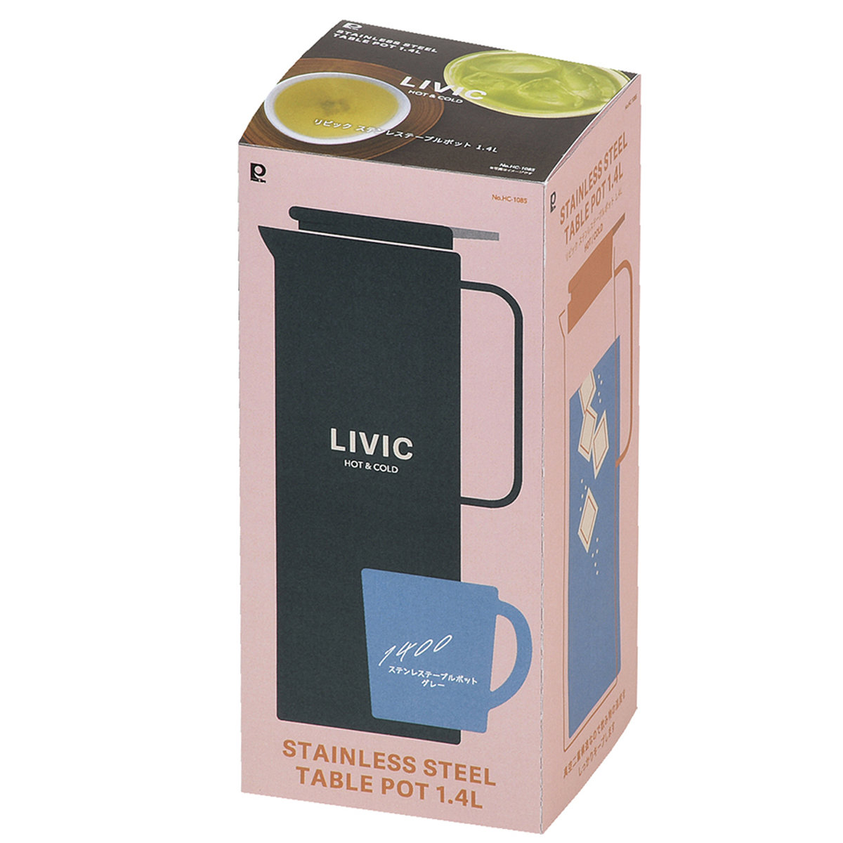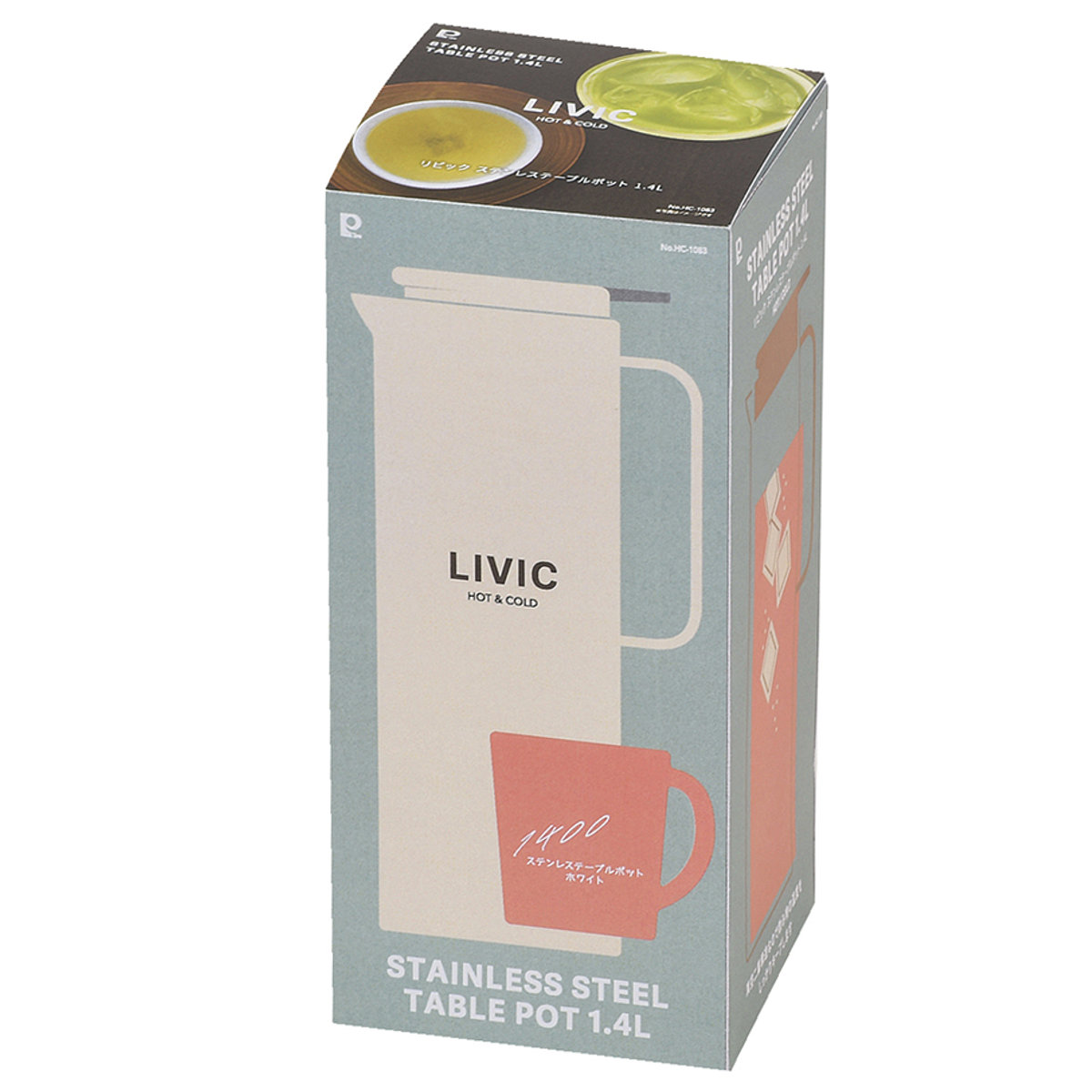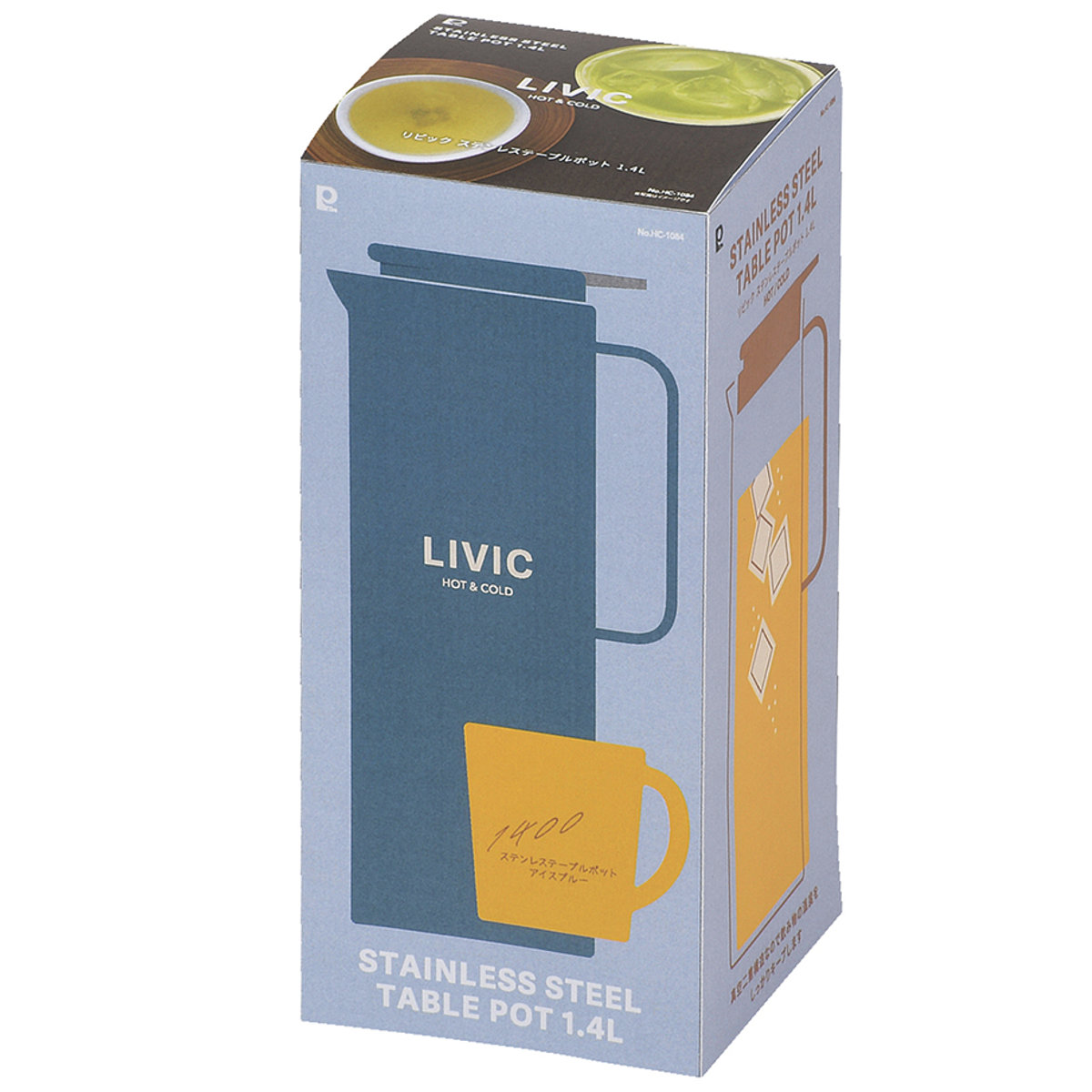 ポット リビック ステンレステーブルポット1.4L ( ステンレスポット 魔法瓶 真空二重構造 保温 保冷 卓上ポット 持ち運び ハンドル付き おしゃれ シンプル モダン 北欧 ) 【アイスブルー】