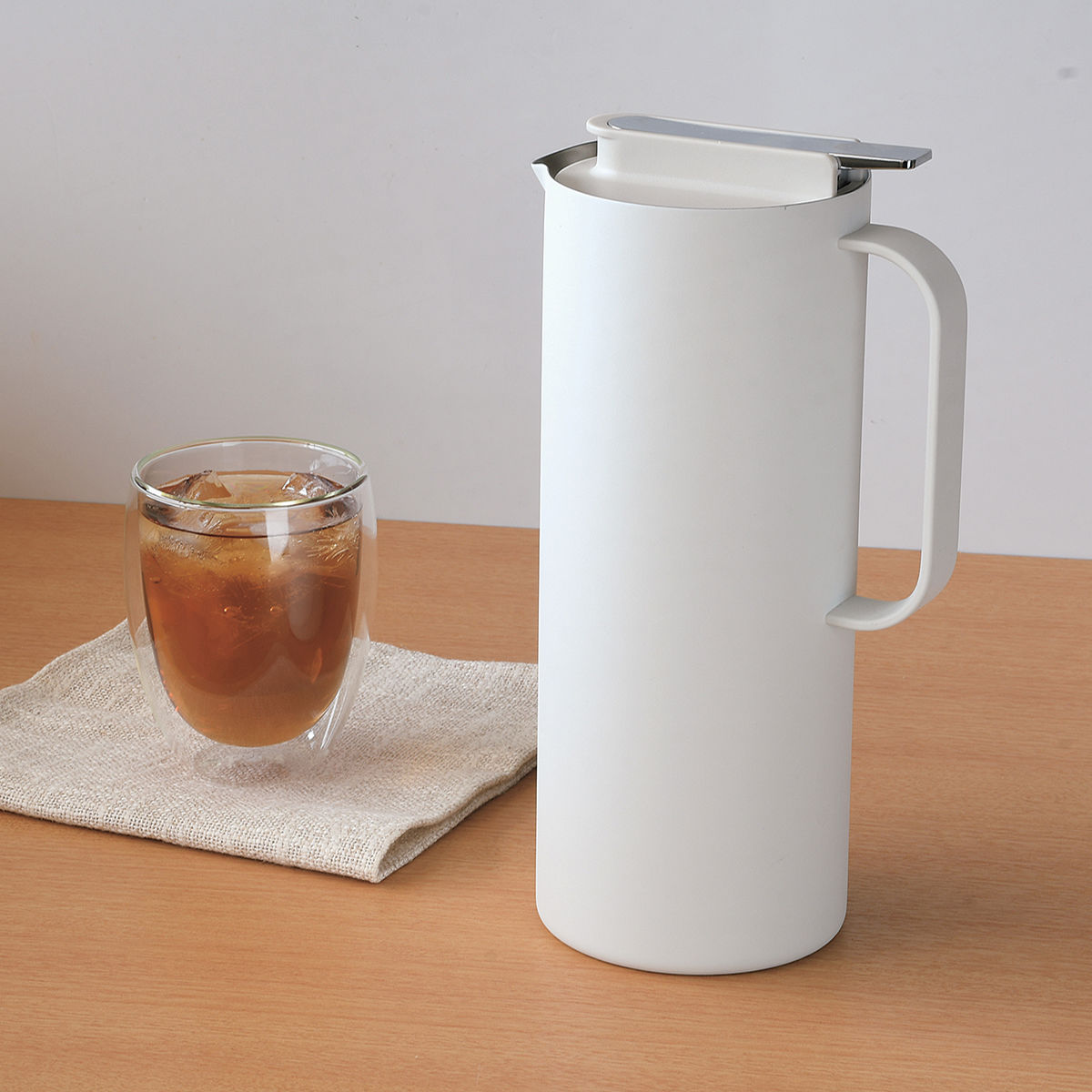 ステンレスの真空二重構造で、飲み物の温度を長時間キープしてくれる卓上ポットです。急激な温度変化にも強く、氷をたっぷり入れても安心。熱いコーヒーやお茶も、煎れたての風味とちょうどいい温度をしっかり保ちます。冷たい飲み物から温かい飲み物まで、季節を問わず一年中活躍するアイテムです。