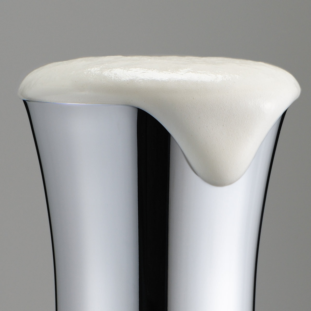 少量サイズで旨さを凝縮します。熟練の研磨技術により、内面は極限まで滑らかに磨かれ、ビールを注ぐときめ細やかな泡が立ち、クリーミーでまろやかな口当たりを引き出します。