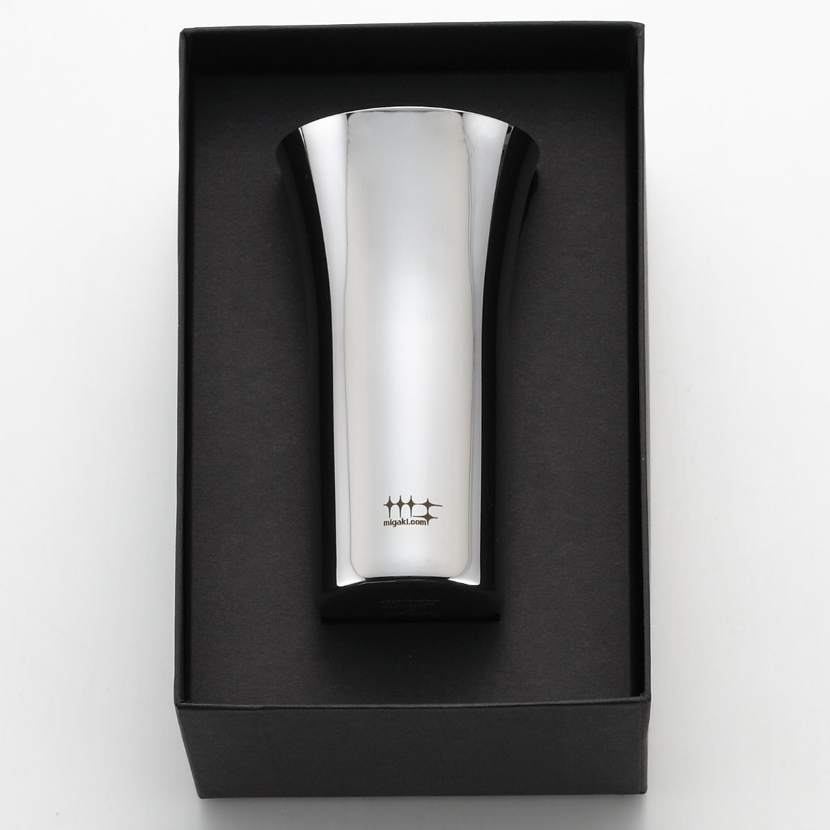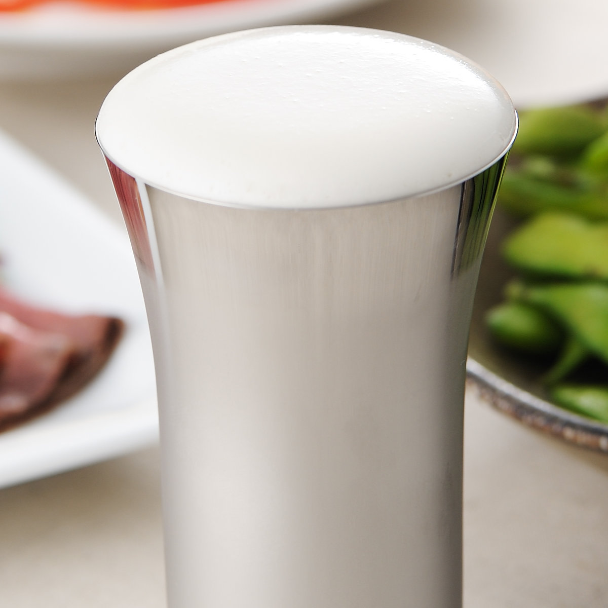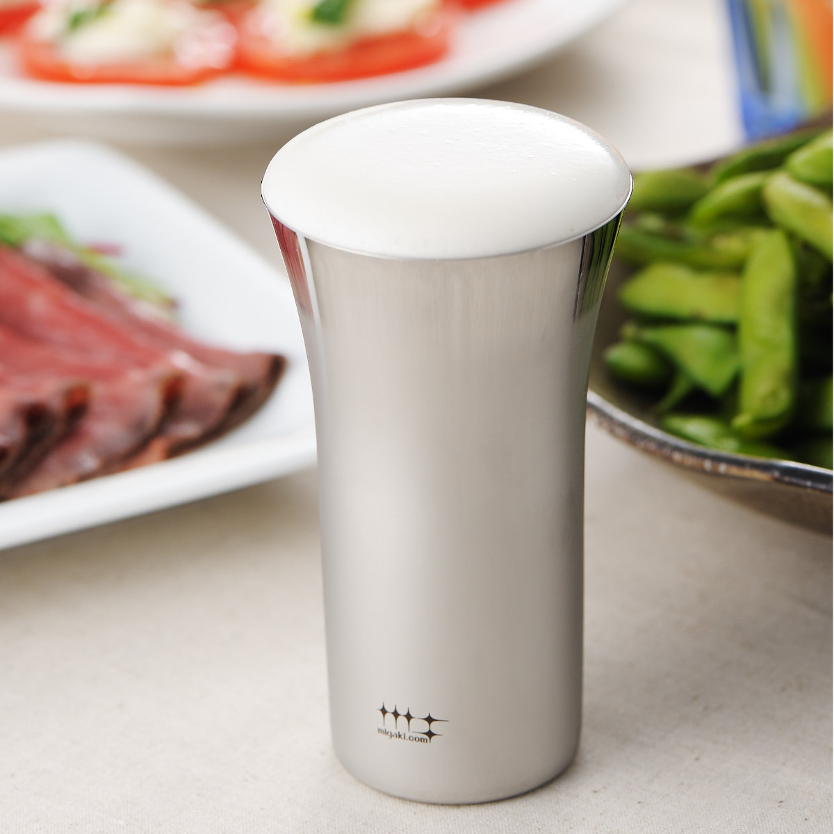 外側は重厚感のある美しい鏡面仕上げで、手に馴染むシンプルでエレガントなフォルム。ステンレス二重構造のため、保冷力が高く、ビールを冷たいままキープし、結露しにくいのも魅力です。