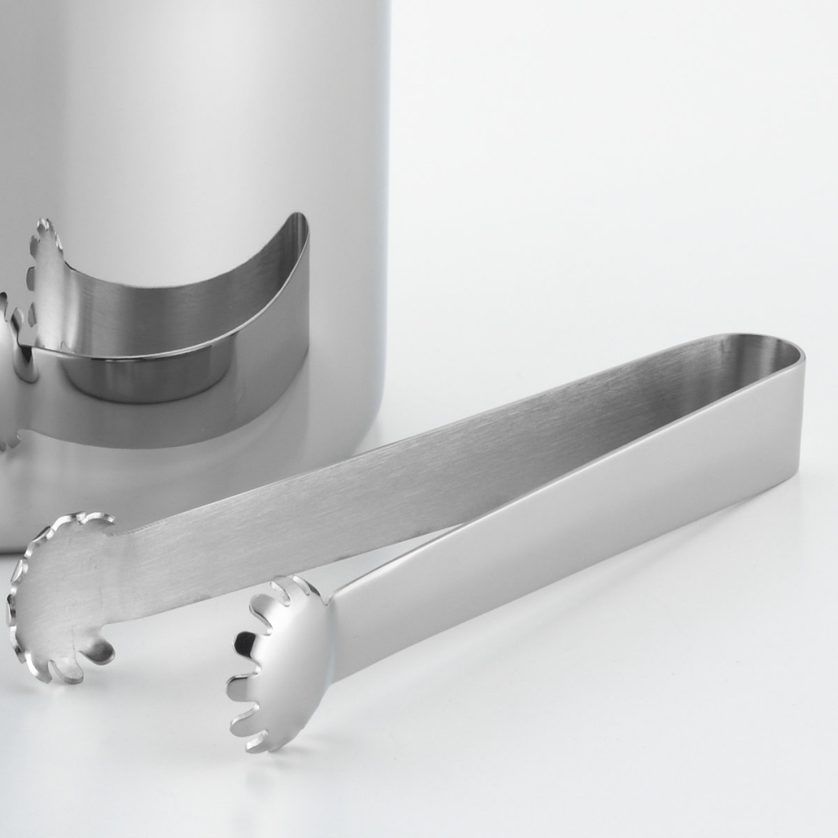氷をしっかりつかめる専用トング付きです。先端が滑りにくい形状になっているため、丸い氷でも安定して取り出しやすく、使い勝手に優れています。