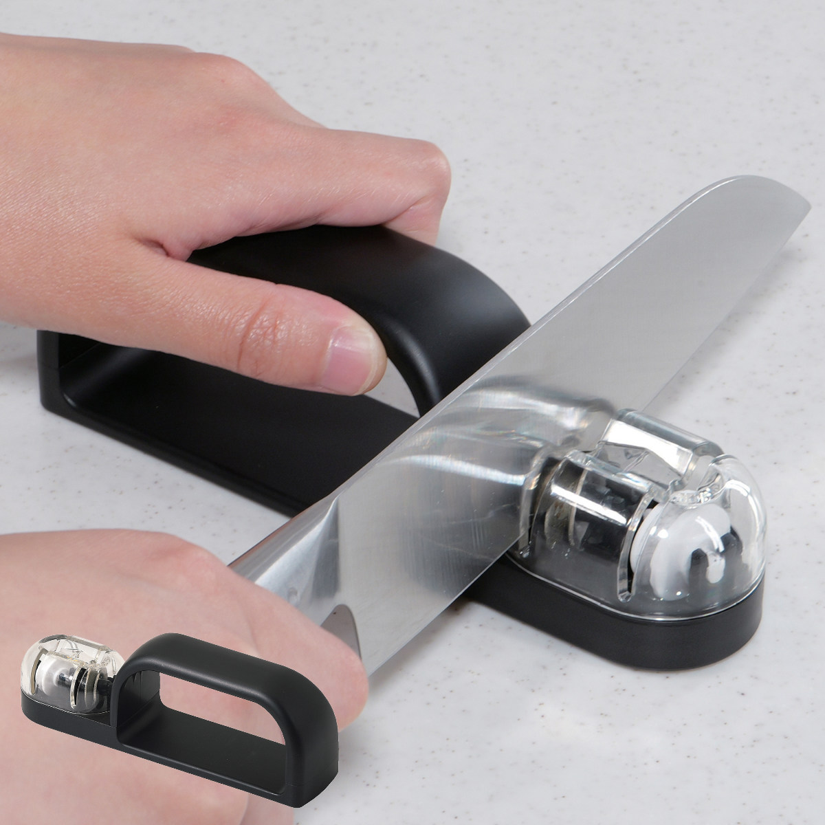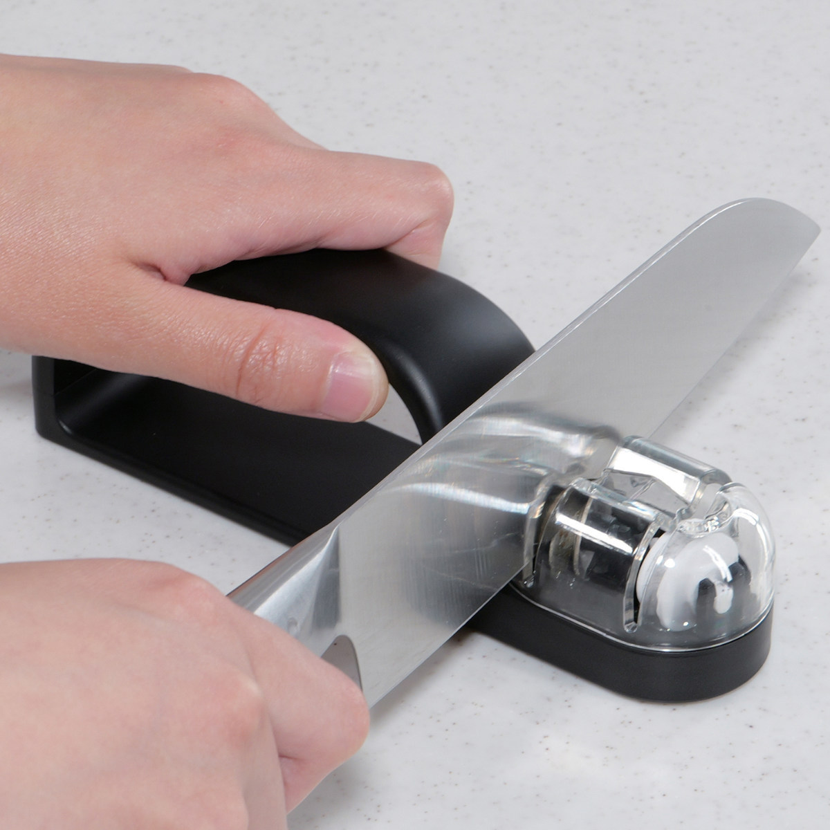 ●手前に引くだけで、簡単・安全に包丁研ぎができます。