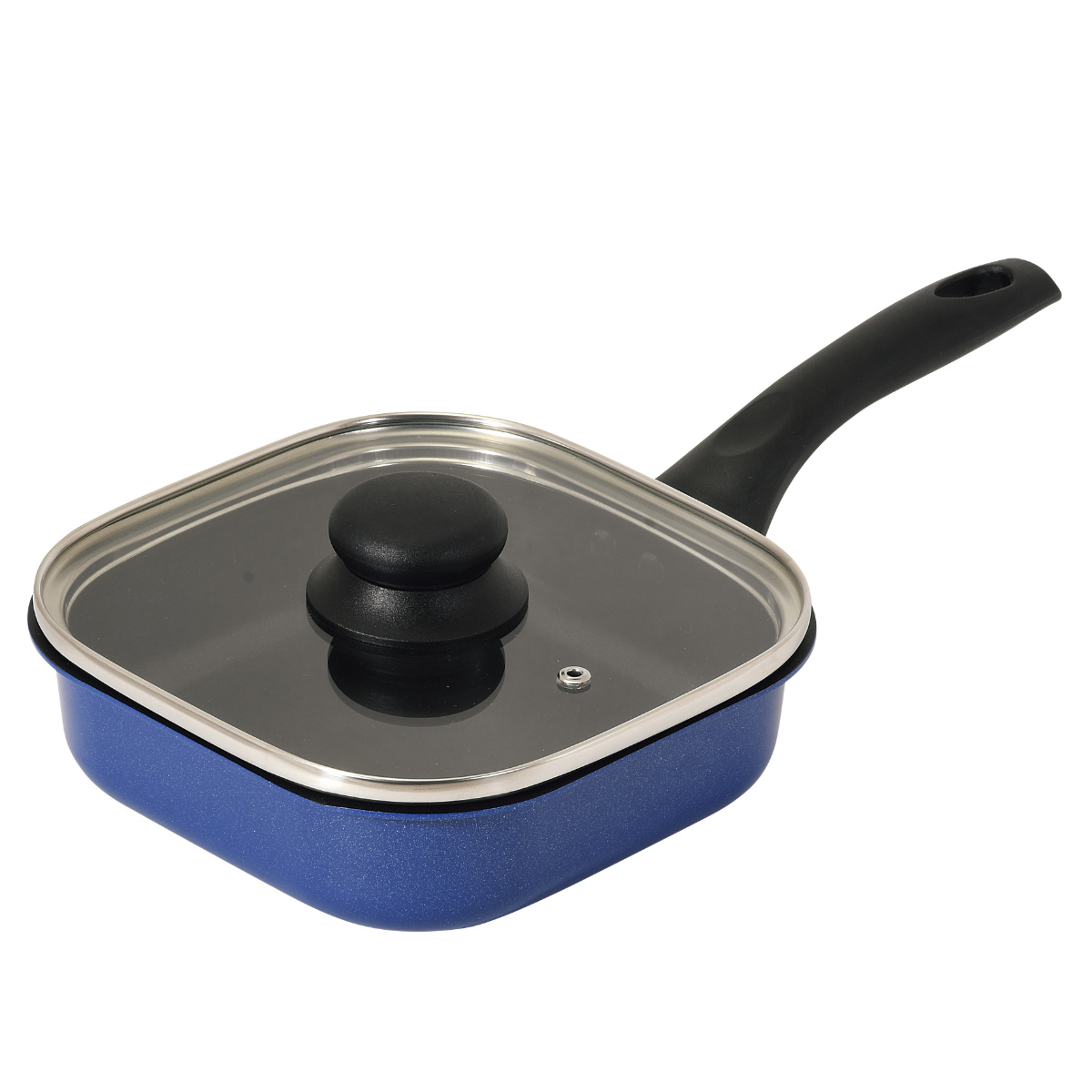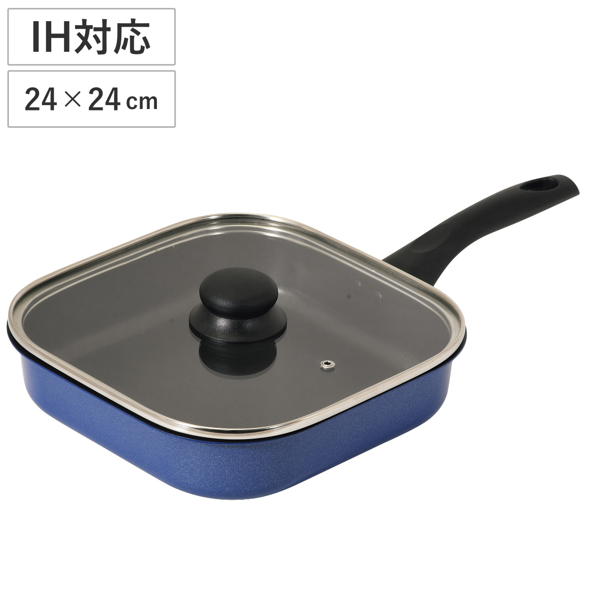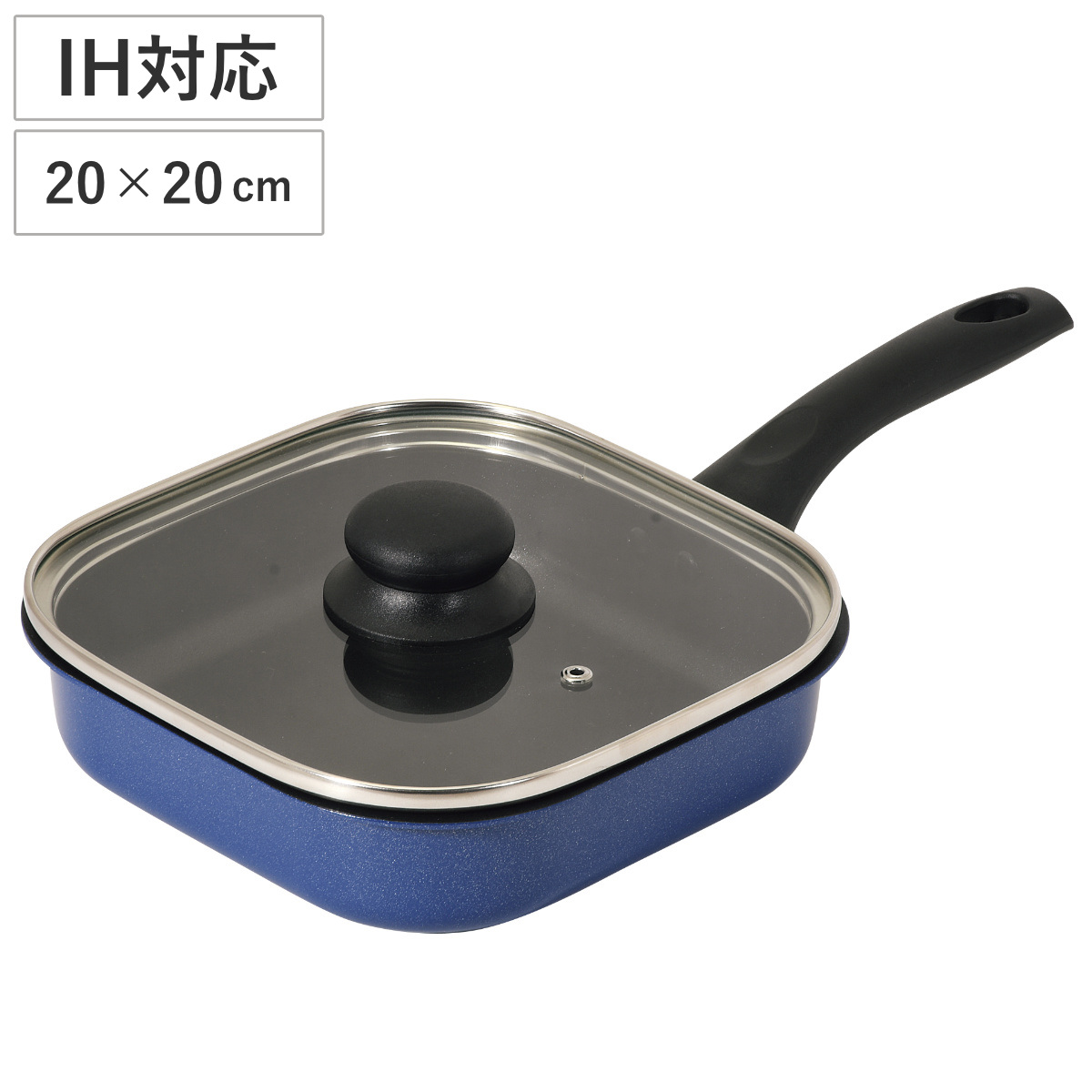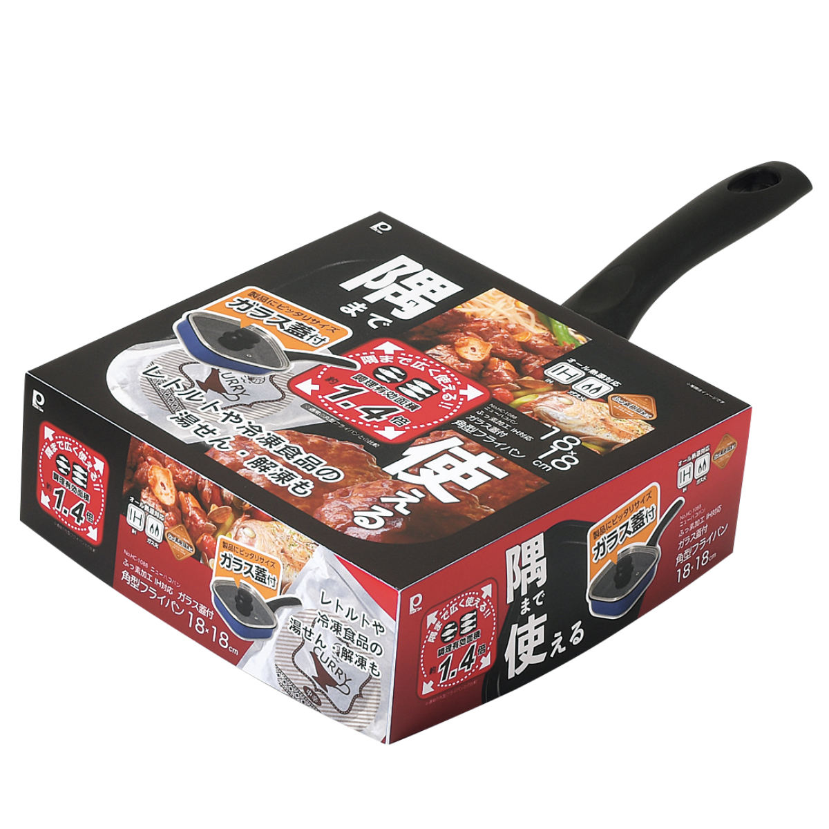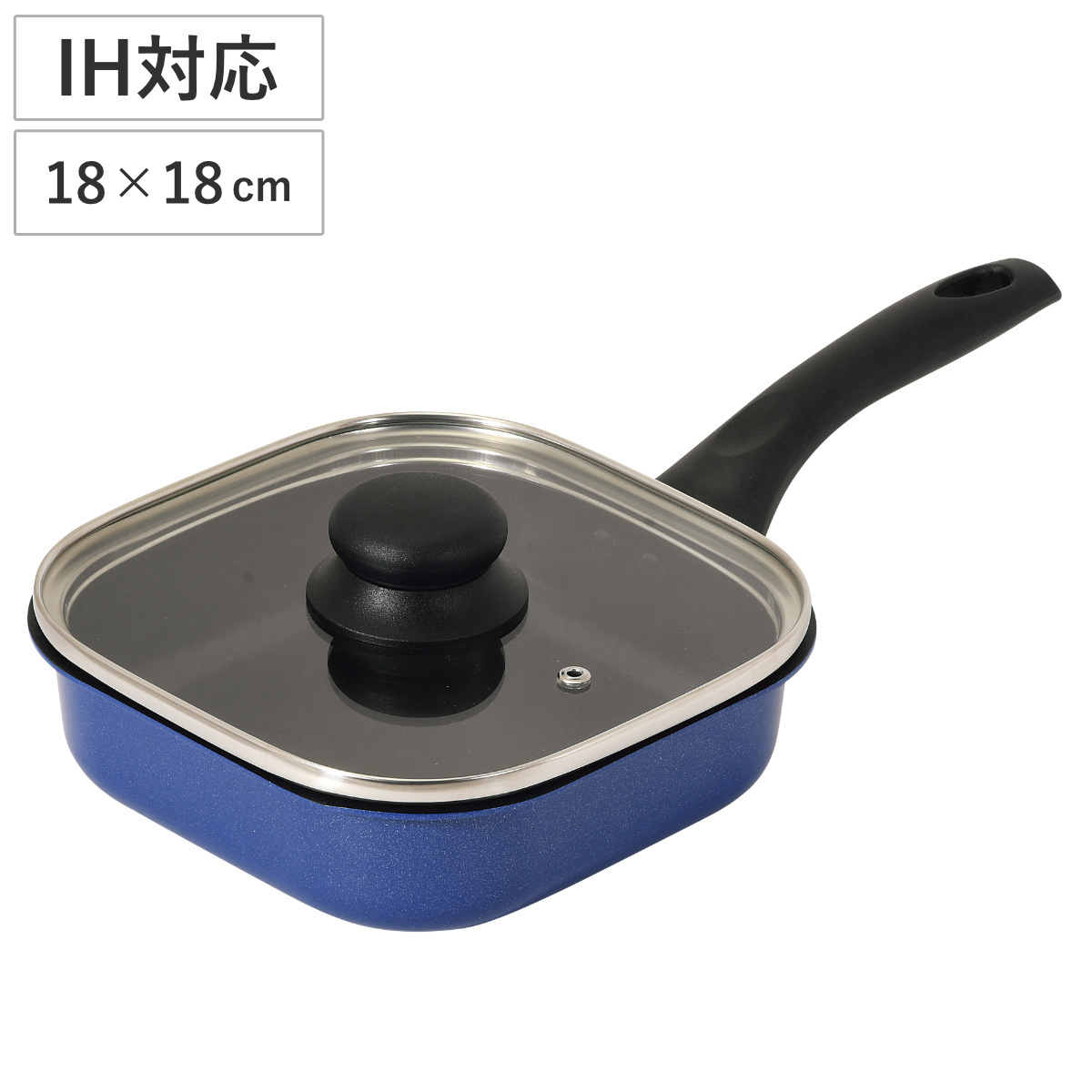 フライパン 角型 18×18cm IH対応 ニューハコパン ガラス蓋付き ( ガス火対応 四角いフライパン 玉子焼き器 卵焼き器 ふっ素加工 スクエア 正方形 深型 ふた付き フッ素加工 玉子焼きフライパン エッグパン 朝食 弁当 軽量 )