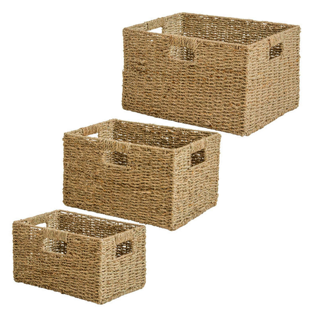 天然素材 バスケット フタなし スクエア S M L 3個組 シーグラス ( かご カゴ 籠 収納 小物収納 ハンドメイド 収納バスケット 3サイズ 1セット セット 収納ボックス 収納ケース 水草 ナチュラル 手編み 手作り )