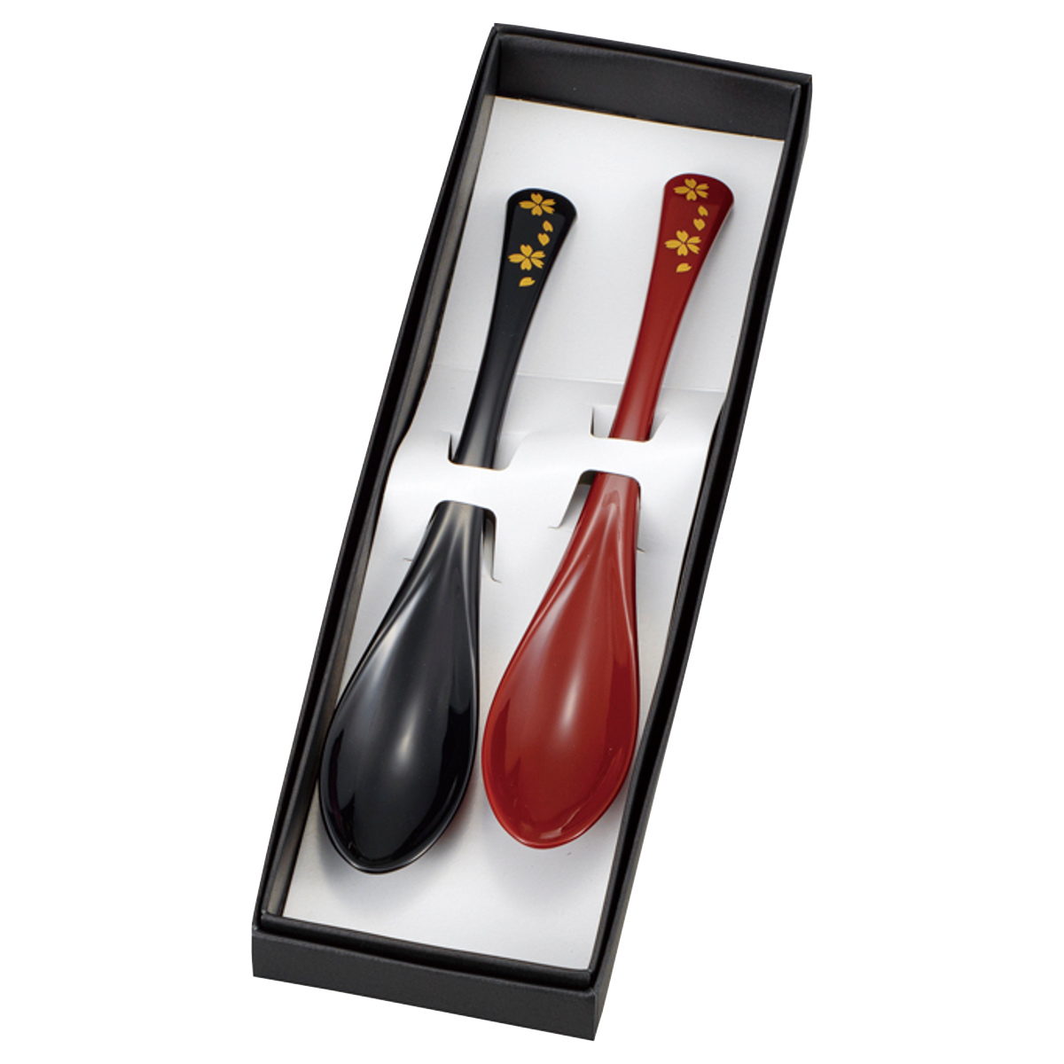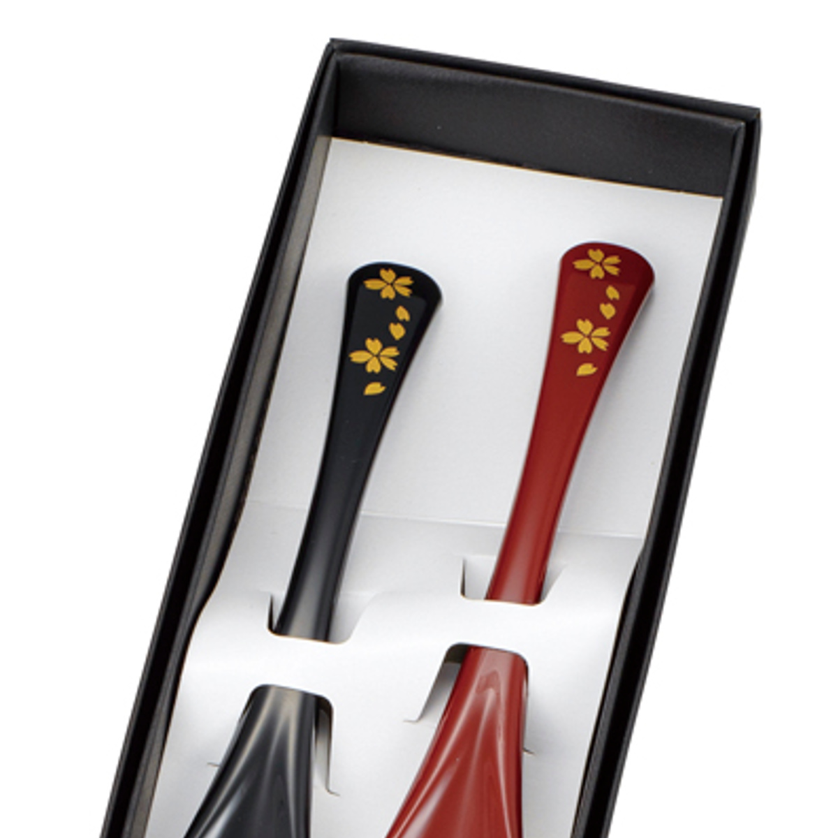 スプーンペア 桜 黒・赤 ( 19.5cm スプーン 2本入り カトラリー ギフトセット 和食器 和食 日本製 和 和モダン 和風 おしゃれ ギフト プレゼント 贈り物 )