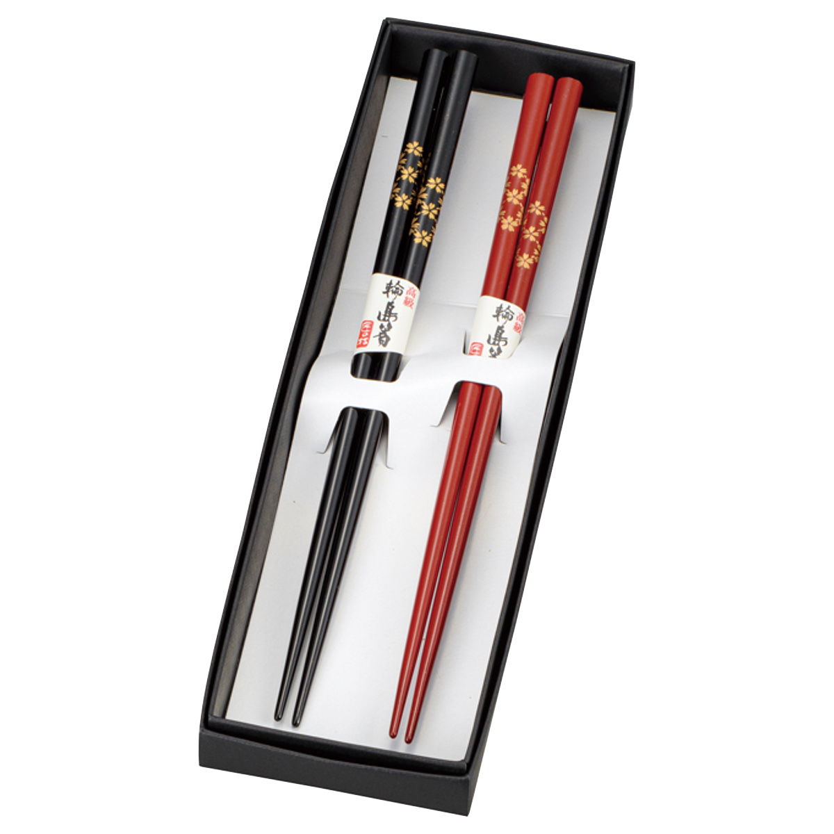 箸 輪島 夫婦箸 桜 黒 赤 ( 22.5cm お箸 カトラリー ギフトセット 和食器 和食 日本製 和 和モダン 和風 おしゃれ ギフト プレゼント 贈り物 )