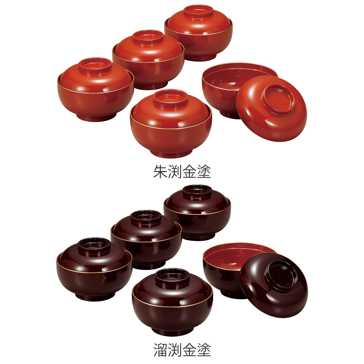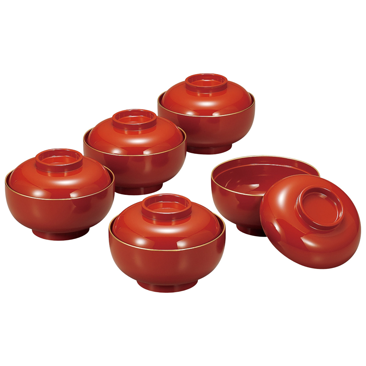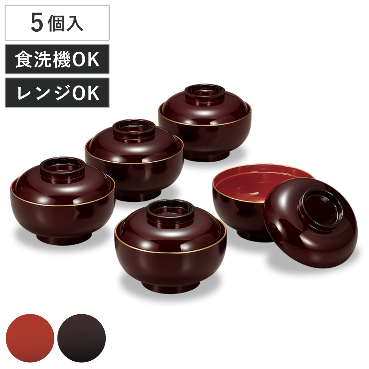 汁椀 雑煮椀 5客 金塗 ( 13.3cm 400ml 5個セット 食洗機対応 電子レンジ対応 樹脂 プラスチック ふた付き 日本製 椀 おわん お椀 食器 割れにくい お祝い 和風 和モダン おしゃれ ) 【溜渕金塗】