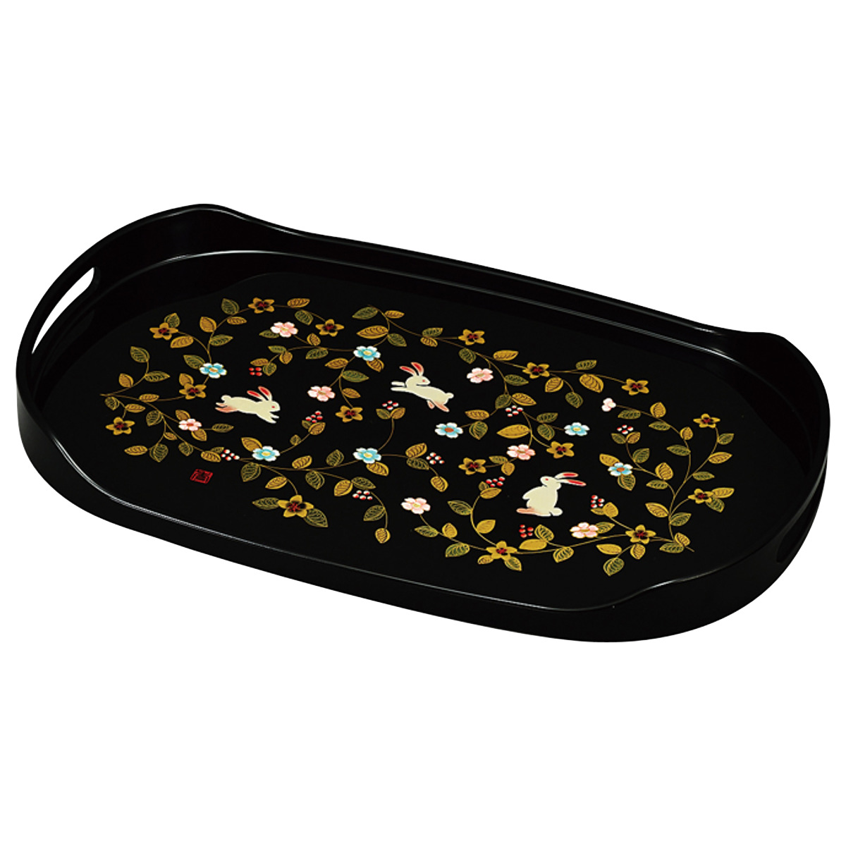 盆 150 小判盆 花の小路 ( 45cm ランチトレー トレイ トレー お盆 膳 プラスチック 樹脂 日本製 漆器風 お膳 長方形 和食 和食器 和風 和モダン おしゃれ シンプル お祝い )