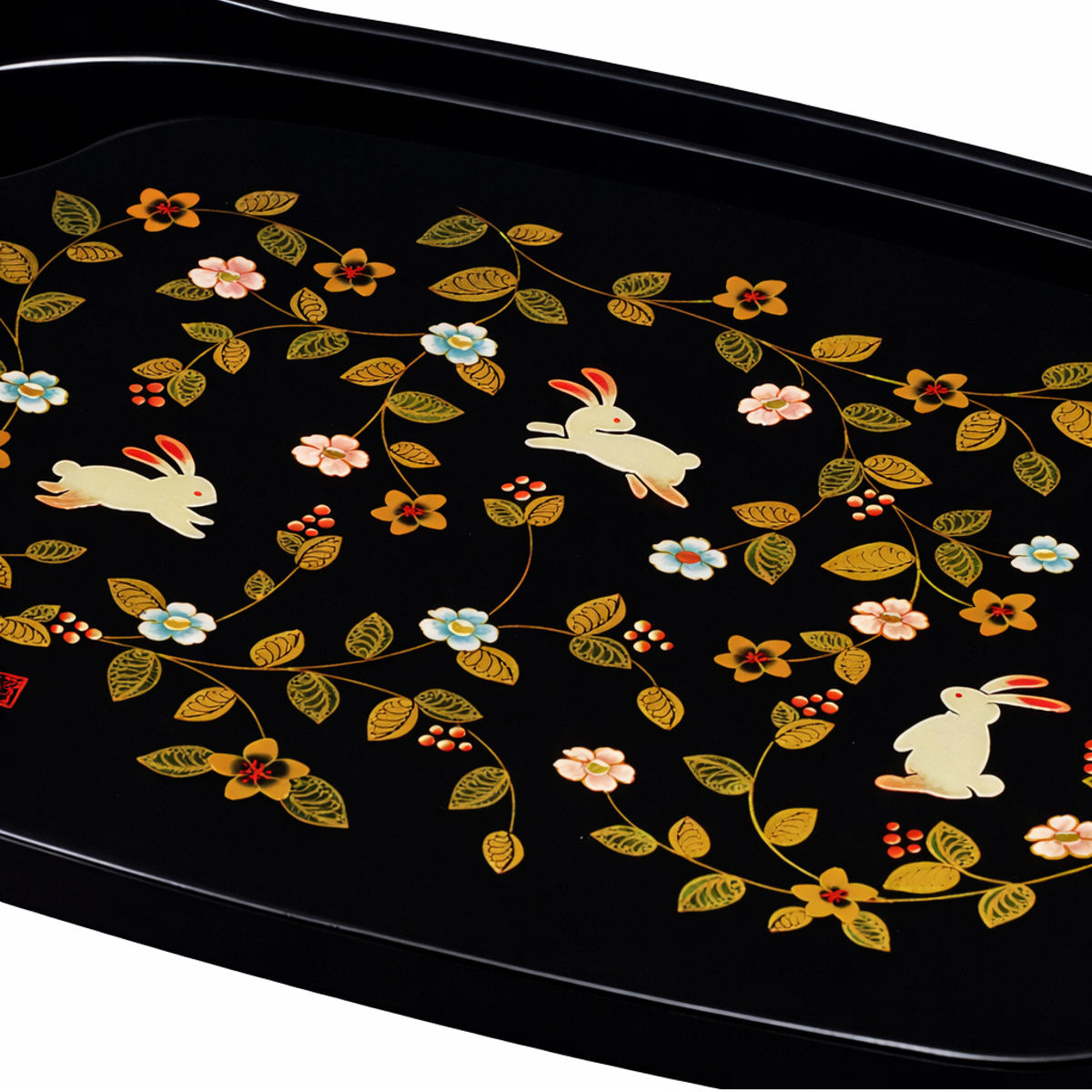 可愛らしいうさぎと小花を上品に描いた花の小路シリーズ。ツキを呼ぶ縁起の良さと、日常にもなじむ日本伝統の花文様です。