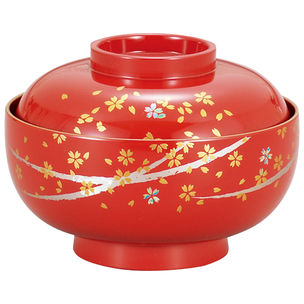 汁椀 四季雑煮椀 はるか ( 400ml 蓋付き プラスチック 樹脂 食洗機対応 日本製 漆器風 お椀 おわん 食器 和食器 和風 和モダン おしゃれ シンプル お祝い お雑煮 お吸い物 ) 【朱】
