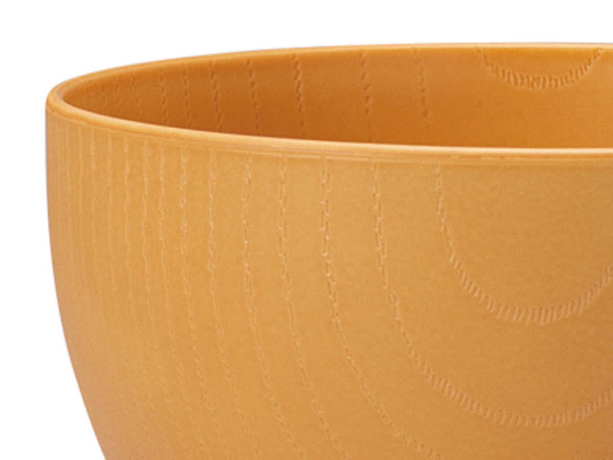 器の内側と外側には木目調のデザインが施されています。食卓に馴染みやすく、温かい雰囲気に包まれるような、ぬくもりを感じられるデザインです。