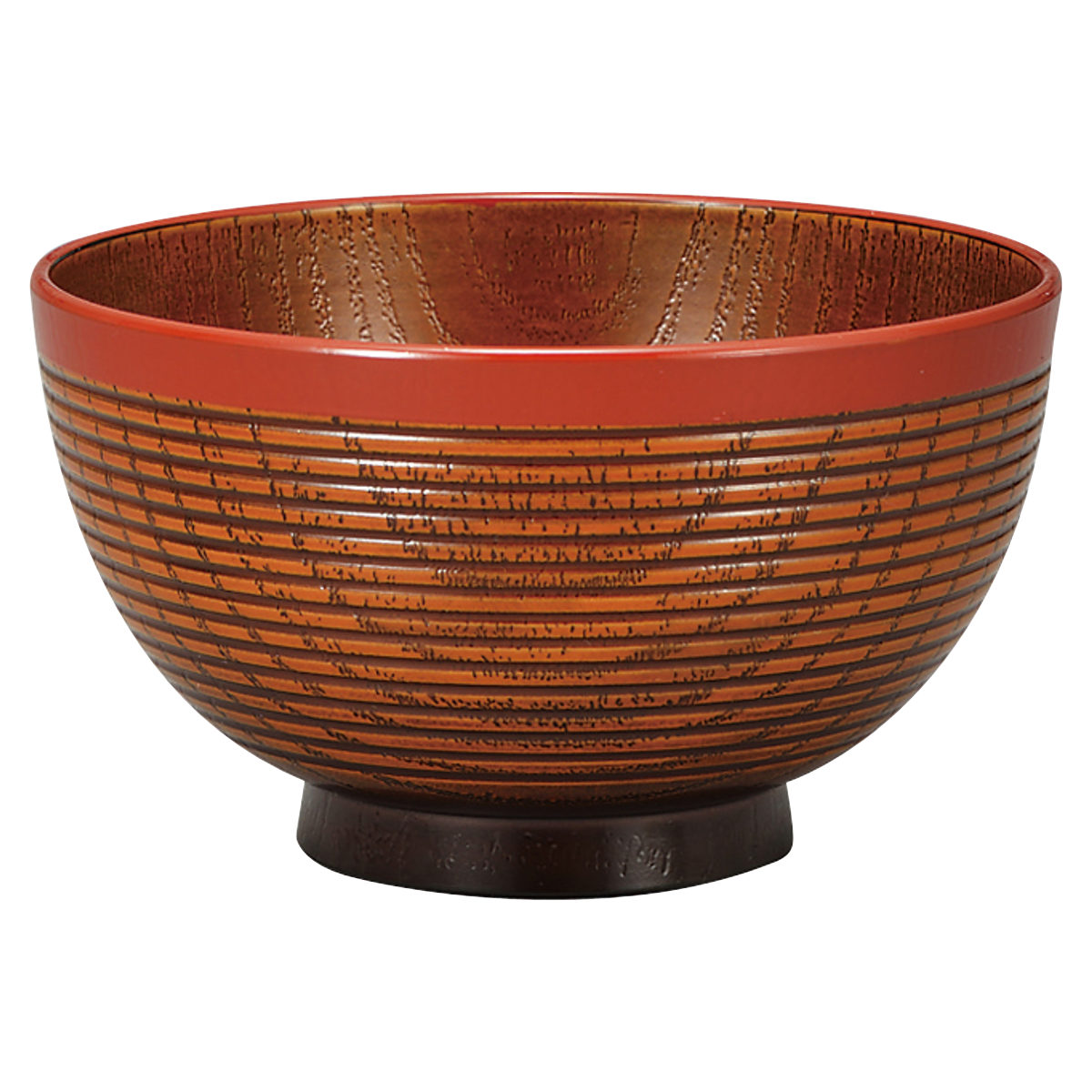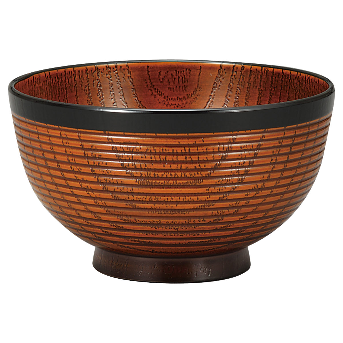 汁椀 レンジ欅千筋杢目汁椀 栃塗 ( 11.8cm 430ml 食洗機対応 電子レンジ対応 プラスチック 樹脂 日本製 おわん お椀 おしゃれ 和モダン 和風 ナチュラル 木目調 ) 【帯黒】