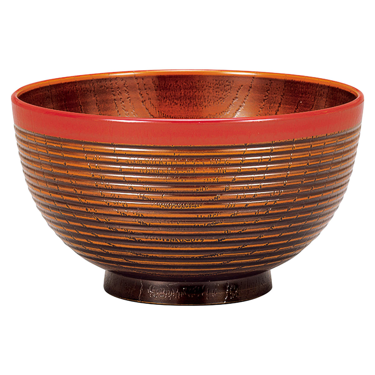 樹脂製で軽くて割れにくい小さめの丼です。欅を思わせる木目に千筋模様を施した、手に馴染むデザインです。少なめの丼ものや小盛りの麺類、お茶漬けや雑炊などに使いやすく、軽めの食事や一人分の盛り付けにちょうど良いサイズです。