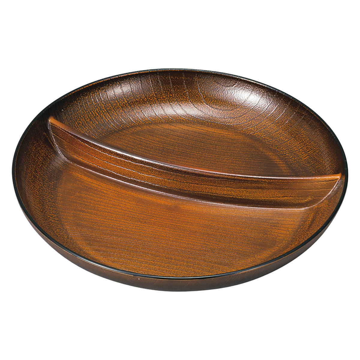 プレート 欅杢目サークルプレート 栃塗 ( 22cm 丸 ラウンド ランチプレート 仕切り皿 食洗機対応 電子レンジ対応 プラスチック 樹脂 日本製 食器 皿 お皿 おしゃれ 和モダン 和風 ナチュラル 木目調 )