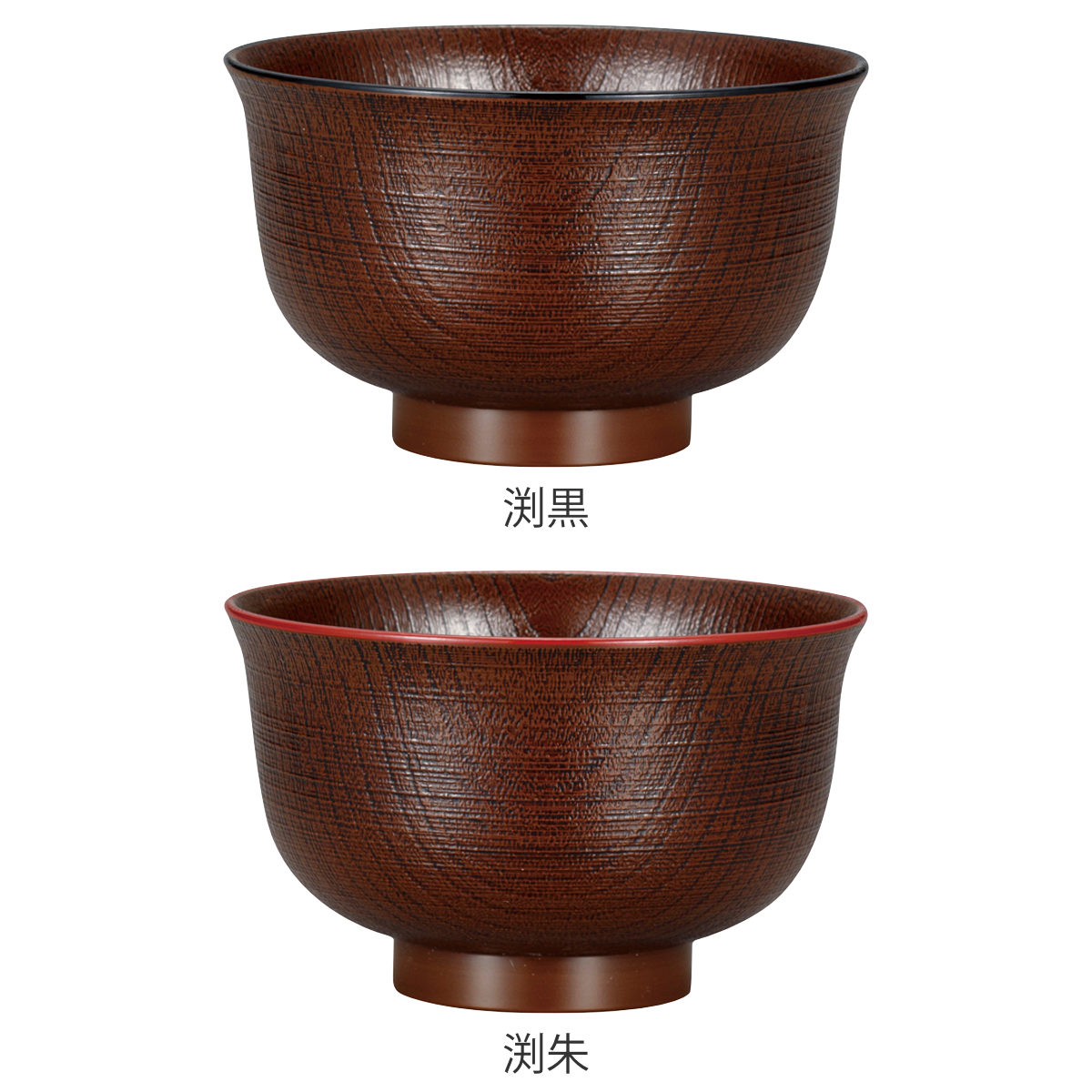 汁椀 レンジ羽反欅杢目汁椀 拭漆 ( 11cm 340ml 電子レンジ対応 食洗機対応 日本製 椀 おわん お椀 食器 木目調 和 和食 和風 和食器 おしゃれ ) 【渕黒】