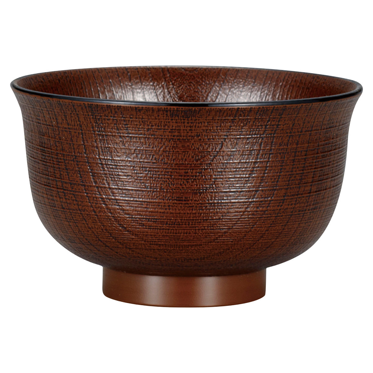 樹脂製で軽くて割れにくい汁椀です。口縁が外側に反った羽反形状で、口当たりがよく、汁物も飲みやすい仕上がりです。味噌汁やお吸い物など普段使いに最適です。