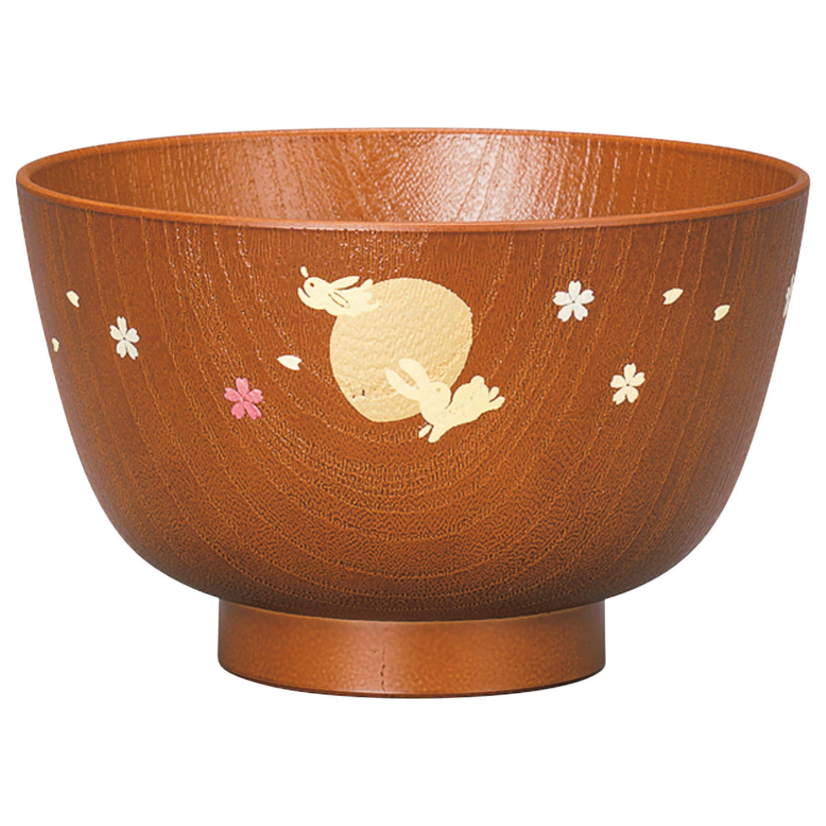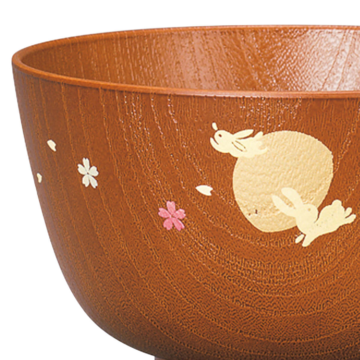 汁椀 レンジ京型欅杢目汁椀 月うさぎ ( 11.5cm 400ml 電子レンジ対応 食洗機対応 日本製 椀 おわん お椀 食器 木目調 和 和食 和風 和食器 おしゃれ )
