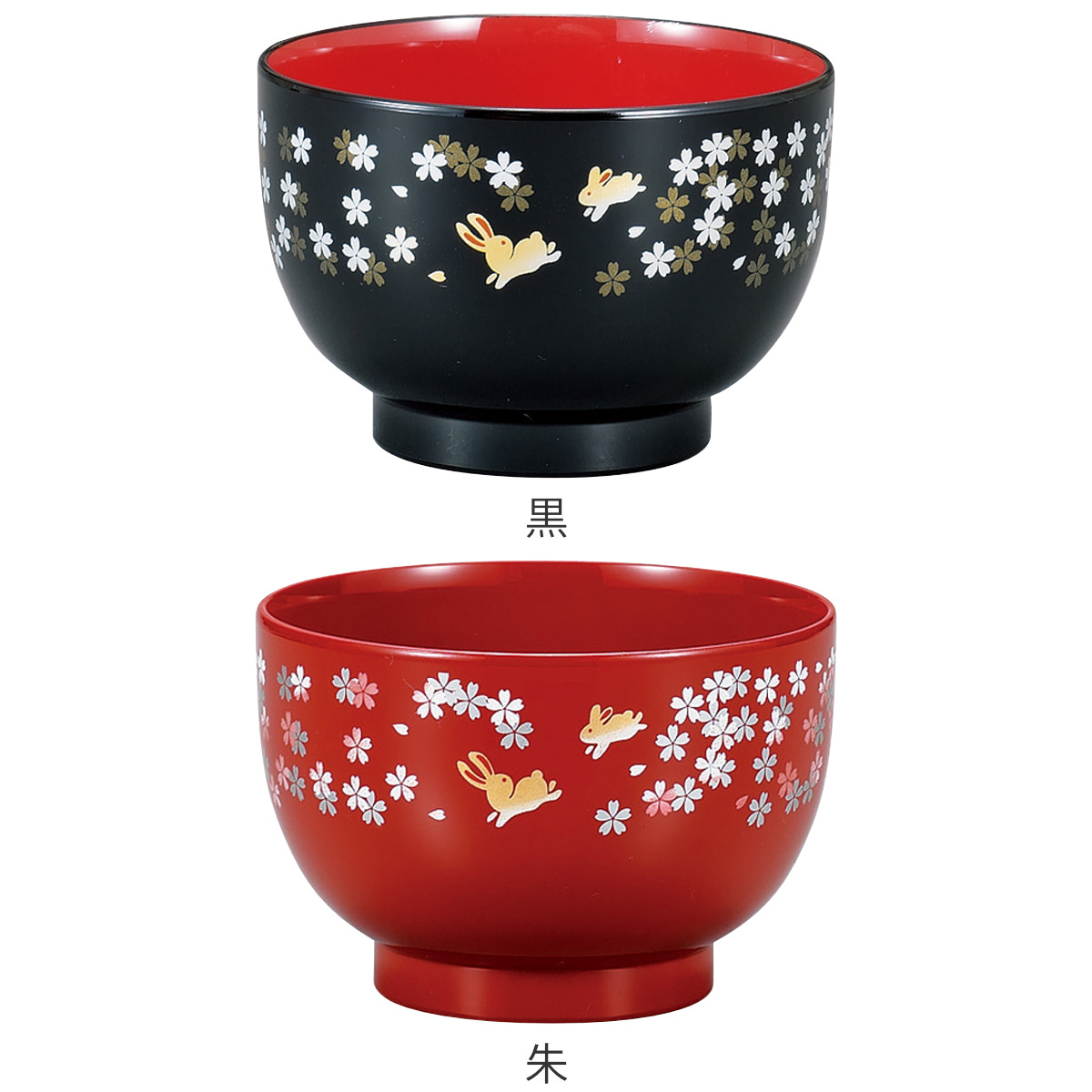 汁椀 レンジ汁椀 うさぎ桜 ( 10.5cm 400ml 電子レンジ対応 食洗機対応 日本製 おわん お椀 椀 食器 漆器風 和食 和 和風 和食器 おしゃれ ) 【黒】