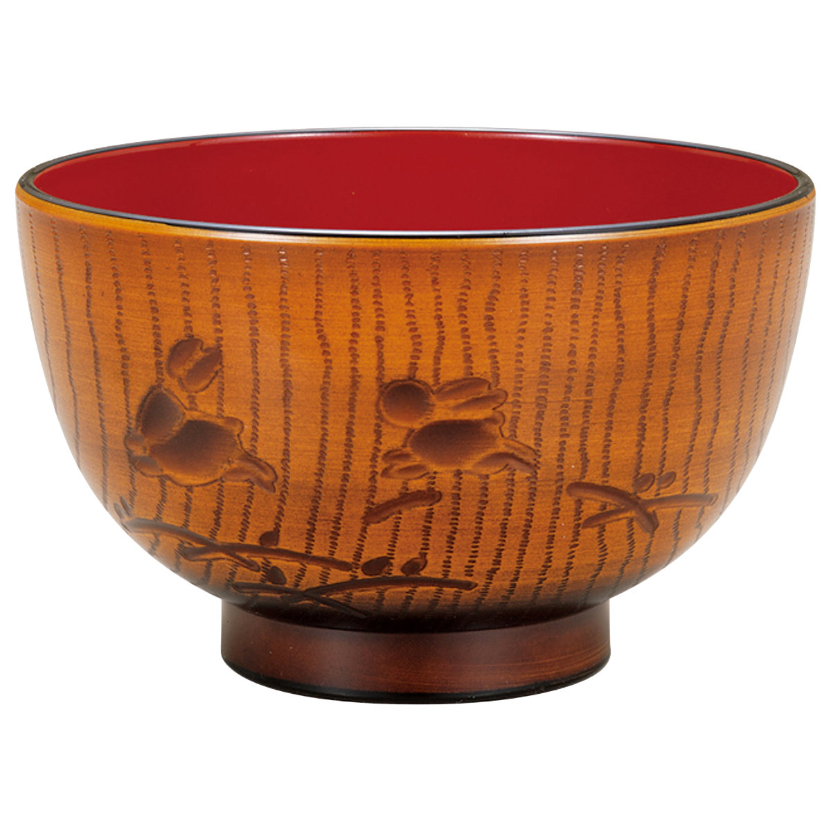 汁椀 レンジ木目うさぎ彫丼 黄杢 ( 13cm 610ml 電子レンジ対応 食洗機対応 日本製 おわん お椀 椀 食器 木目調 和 和食 和風 和食器 おしゃれ )