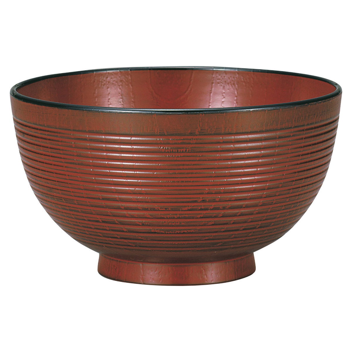 樹脂製で軽くて割れにくい小さめの丼です。欅を思わせる木目に千筋模様を施した、手に馴染むデザインです。少なめの丼ものや小盛りの麺類、お茶漬けや雑炊などに使いやすく、軽めの食事や一人分の盛り付けにちょうど良いサイズです。