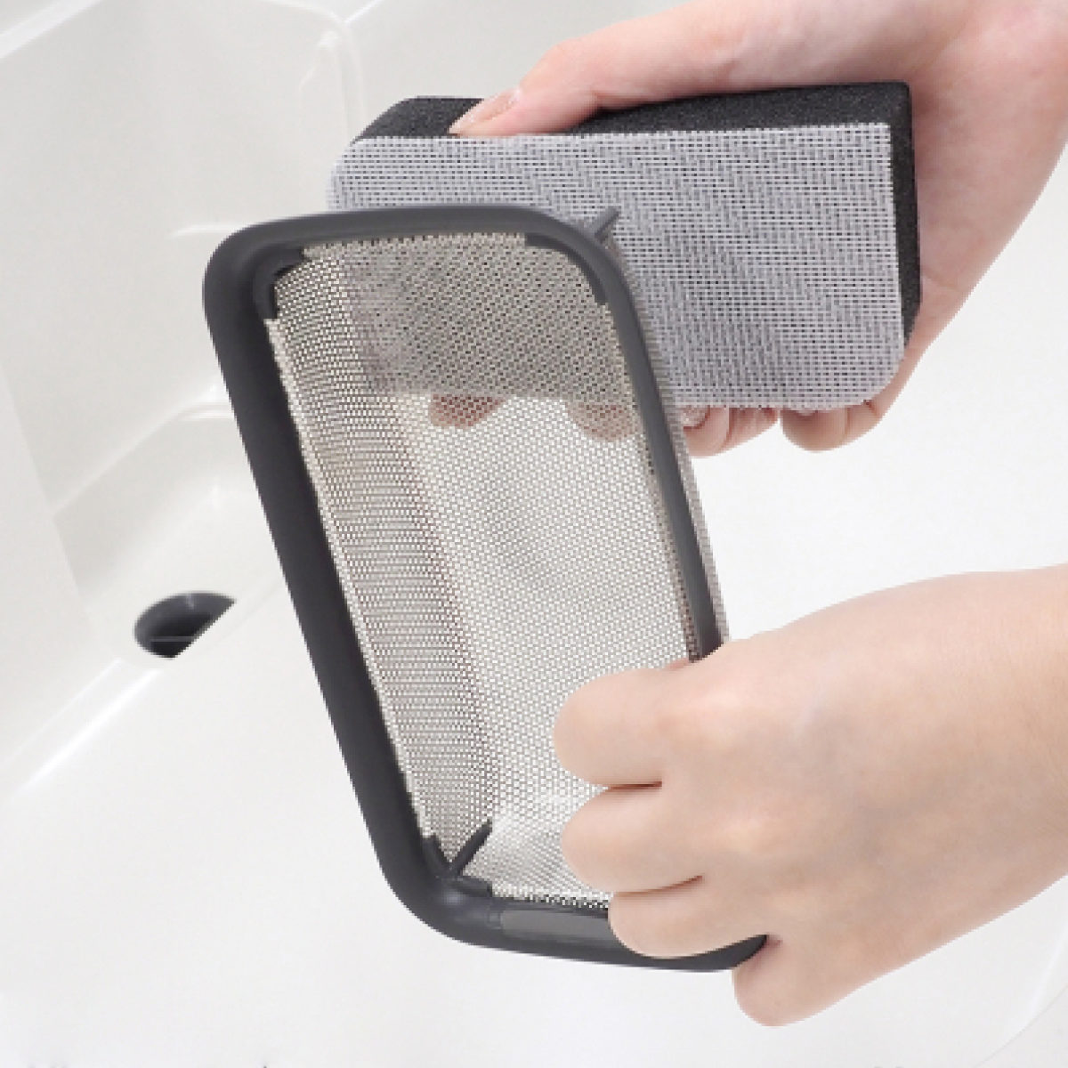 シンクスポンジ シンク洗いスポンジ ベロア&ブラシ 水垢 ( スポンジ キッチンスポンジ シンク 排水口 網 洗いやすい 日本製 ザル洗い 台所スポンジ シンク用スポンジ 両面使える 排水口の網目にフィット シンク内 網戸 クリーナー )