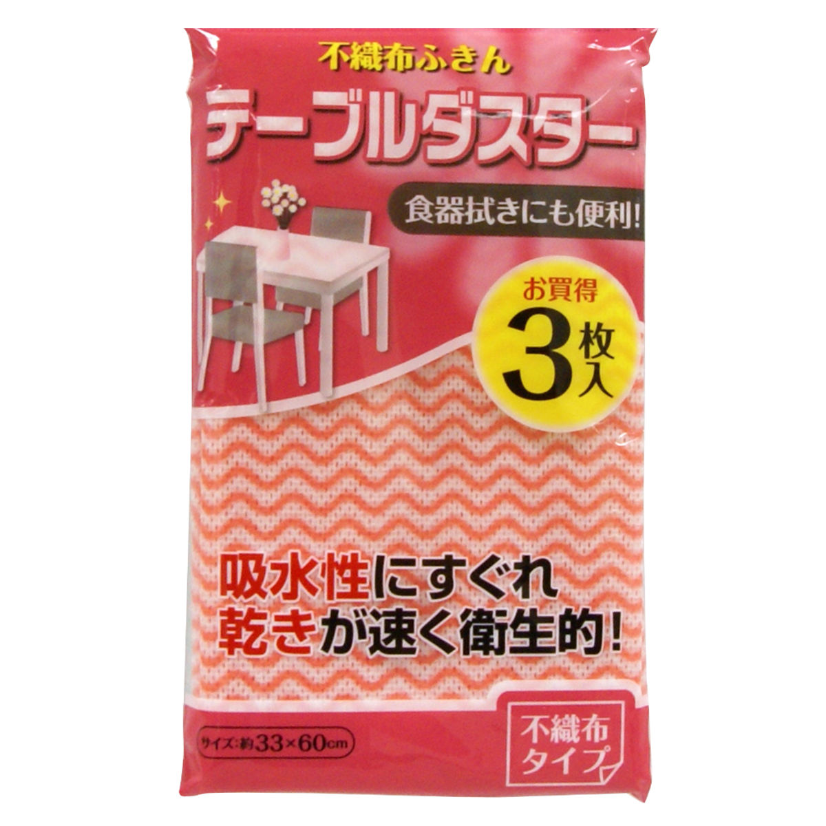吸水性にすぐれ、乾きも速く衛生的なテーブルダスター3枚入り