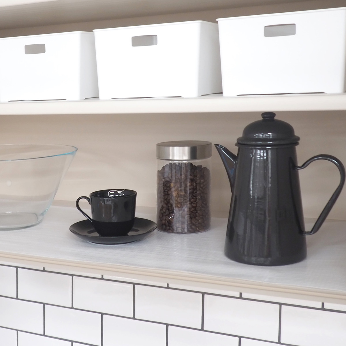 スッキリ敷けて汚れを防ぐ食器棚用シート