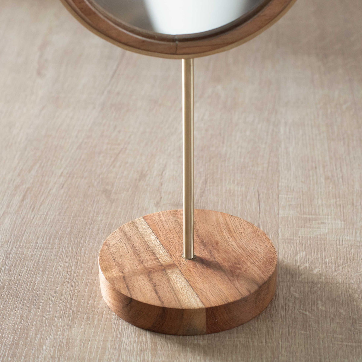 卓上ミラー 真鍮 シトア 天然木スタンド ( 鏡 卓上 スタンドミラー 玄関 天然木 スタンドタイプ 円形 丸 カガミ 卓上鏡 真鍮フレーム 真鍮製 木製 )