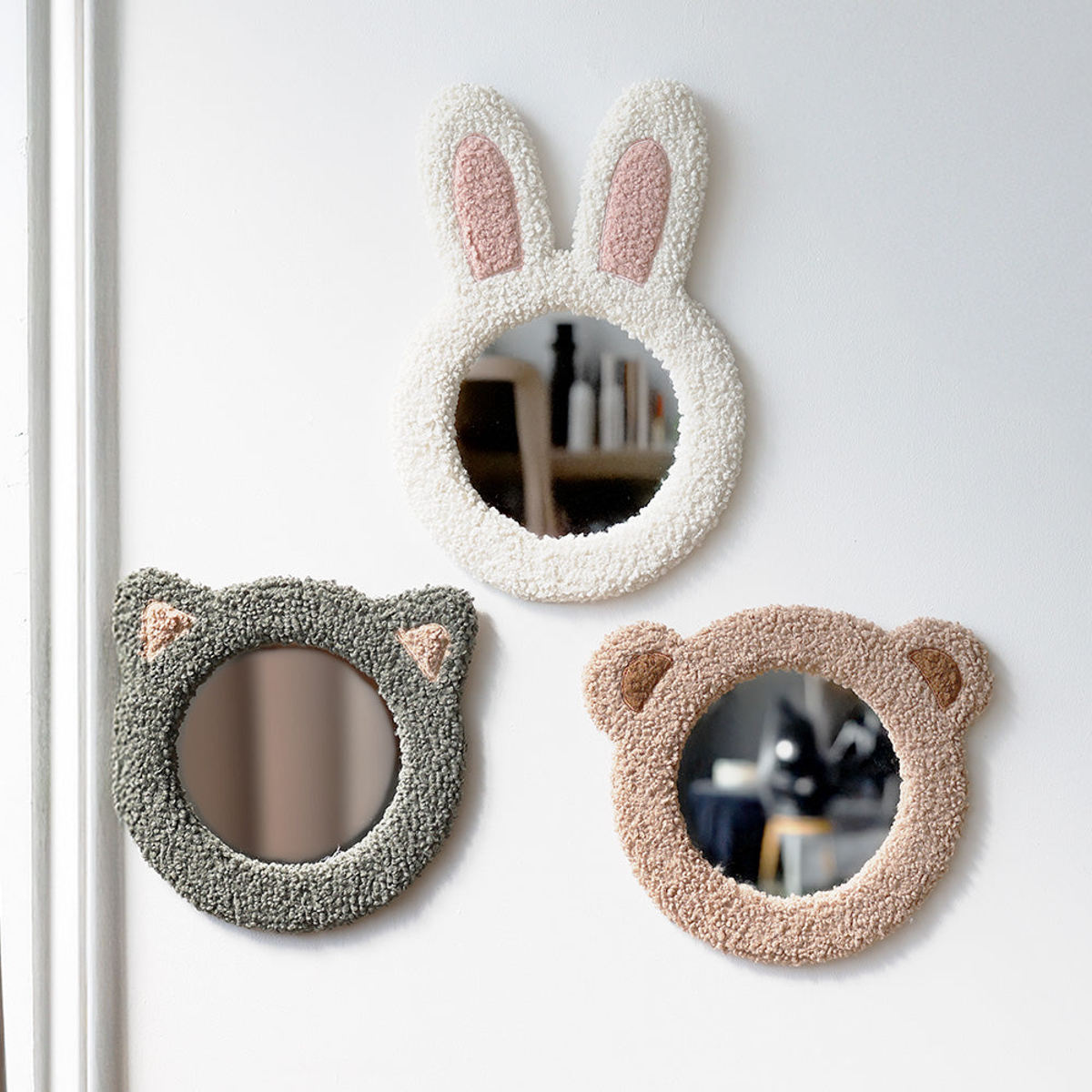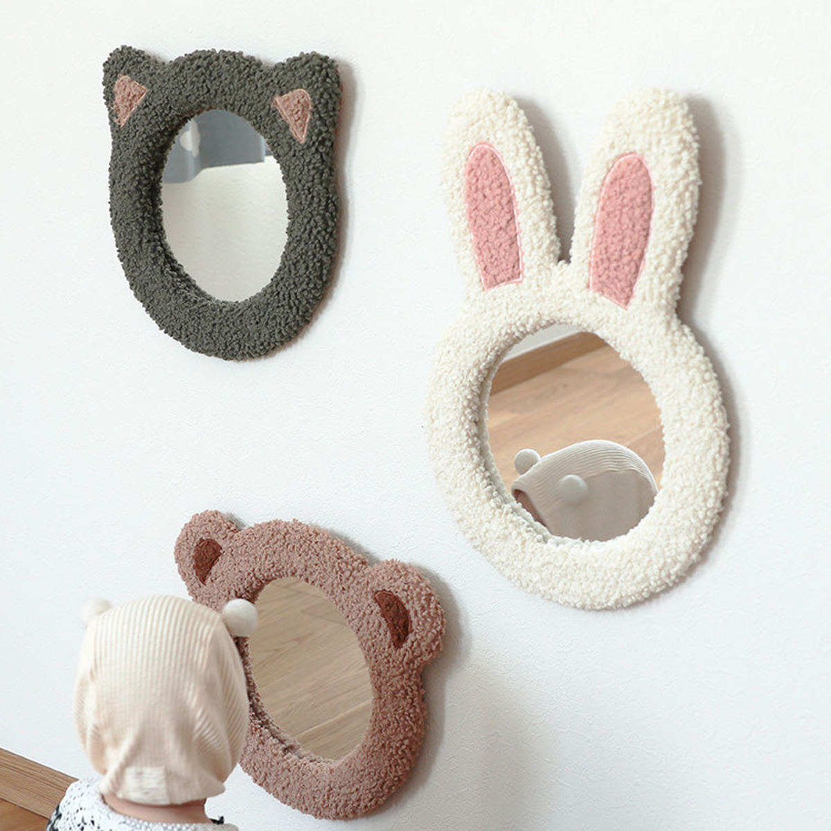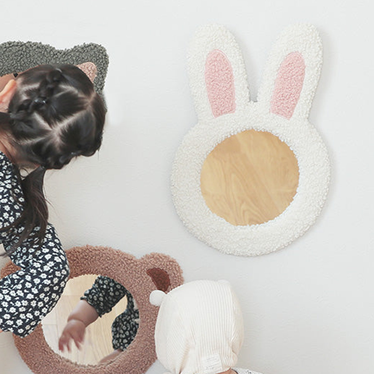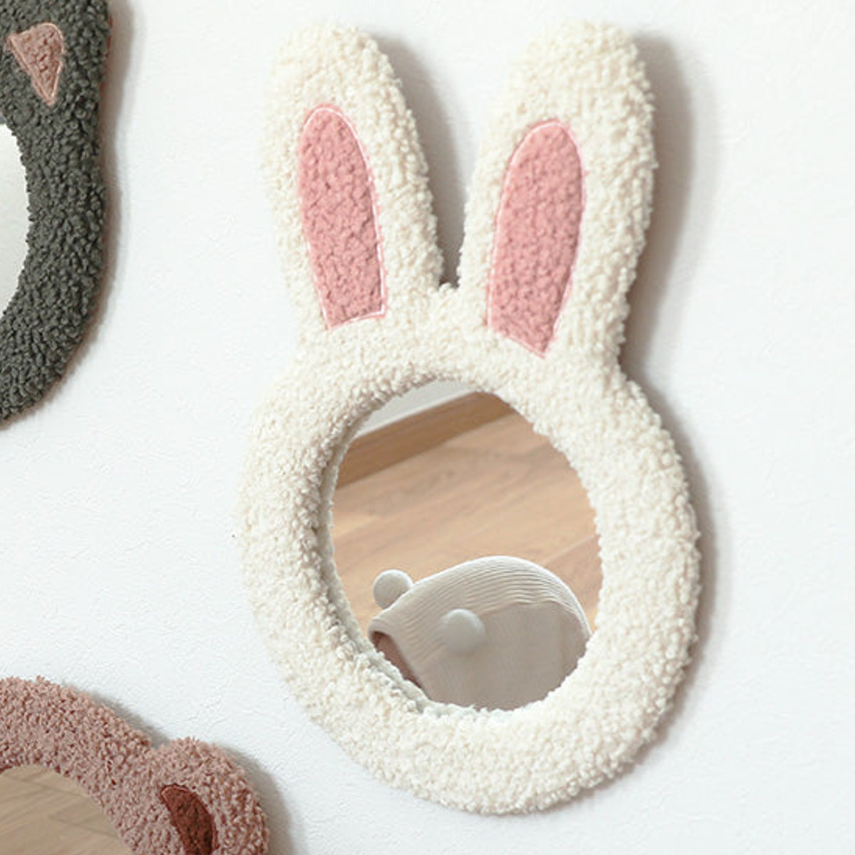 ウォールミラー 子ども用 Puffy Mirror アニマル ( 鏡 壁掛け うさぎ ボア もこもこ キッズ トイトレ アニマル型 BUNNY 子ども部屋 ギフト ウサギ ふわふわ )
