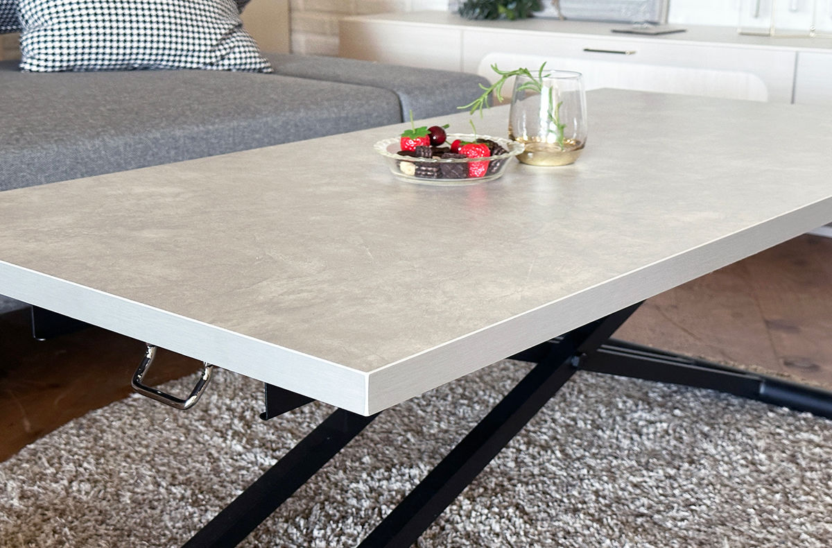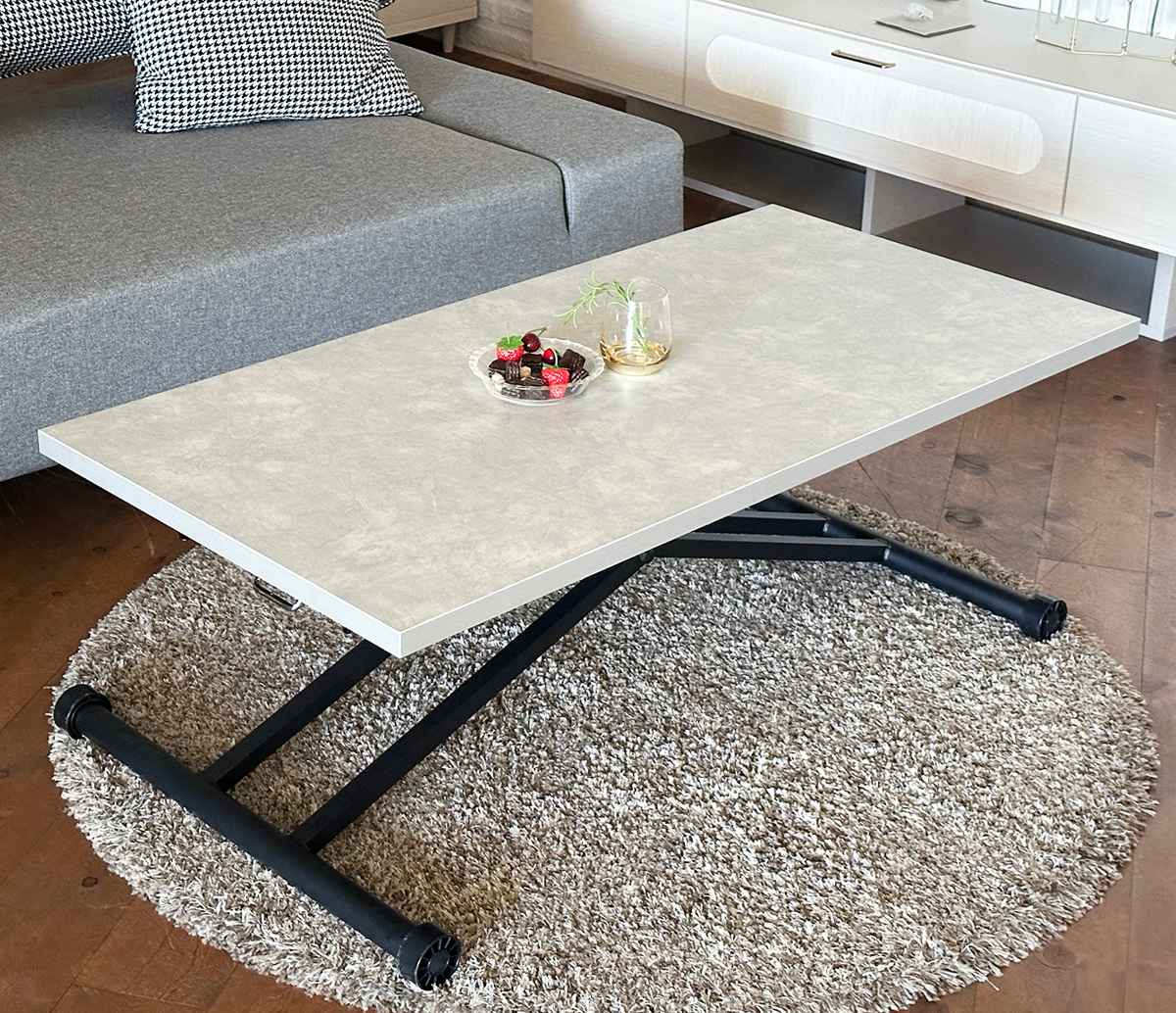 暮らしのスタイルに合わせて高さを自由に調整できる昇降式リビングテーブルです。リビングテーブルとしてくつろぎの時間に使うのはもちろん、作業や食事の際にはハイテーブルへスムーズに切り替えが可能です。