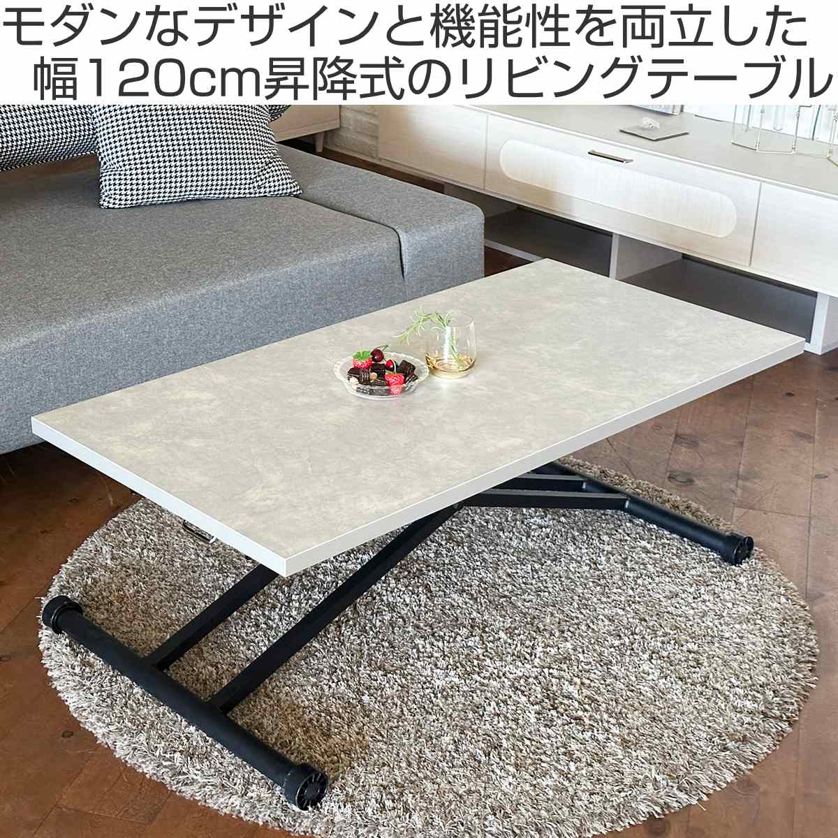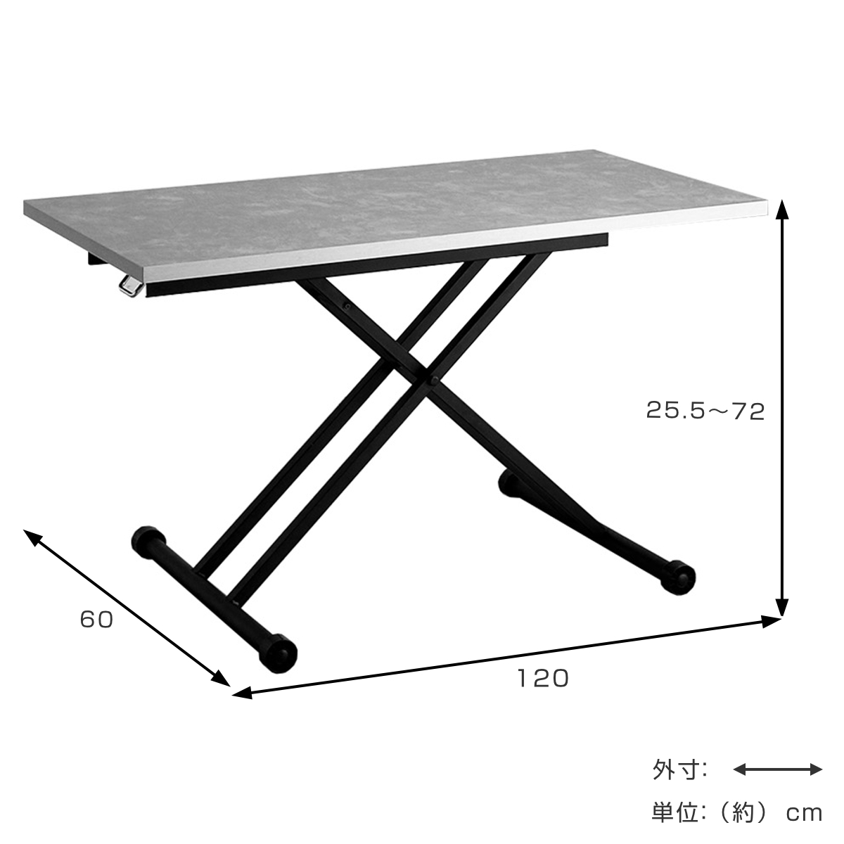 リビングテーブル 幅120cm 昇降式 リフティングテーブル ブルータ ( 昇降式テーブル 120 ローテーブル 一人用 石目調 リビング センターテーブル デスク テーブル 机 高さ調節 作業台 コーヒーテーブル 長方形 昇降テーブル )