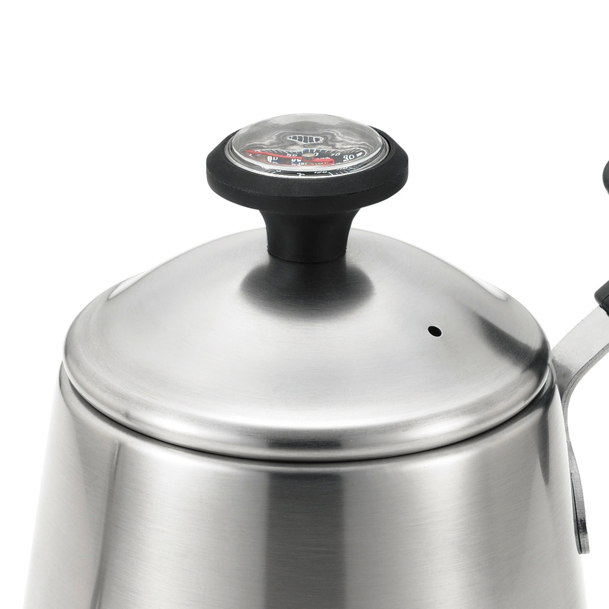 ポット上部にバイメタル式の温度計を備え、お湯の温度を一目で確認できるため、コーヒー抽出に適した温度管理が簡単に行えます。コーヒーに最適な抽出温度(86度~92度)の部分が一目で分かる目盛りになっています。