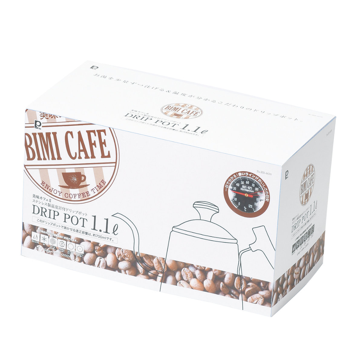 ステンレス製温度計付ドリップポット 1.1L