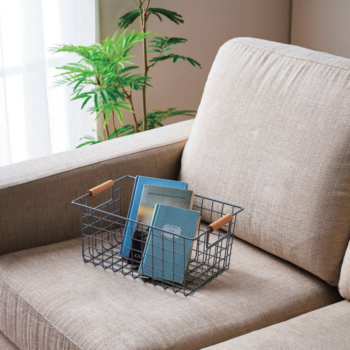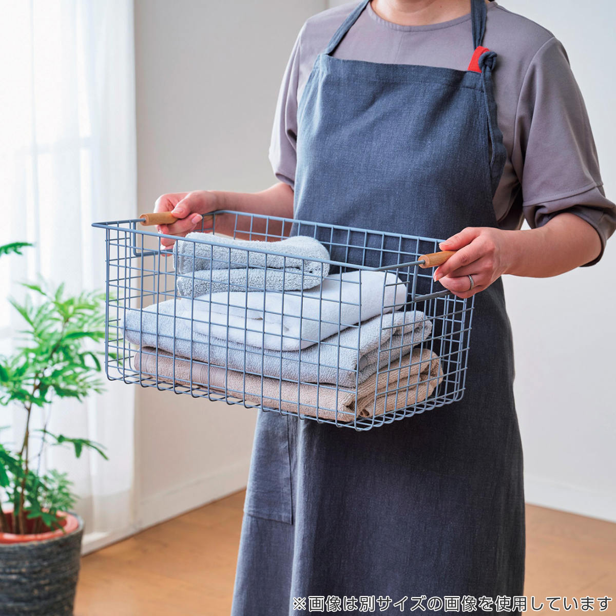 天然木の持ち手とスチールのワイヤーフレームを組み合わせた、無駄のない洗練されたデザインのワイヤーバスケットです。 置くだけで空間をすっきり心地よく整えます。日用品の整理からランドリー、キッチン、リビング収納まで幅広く活躍し、生活感を抑えながら使い勝手の良さも叶えるアイテムです。