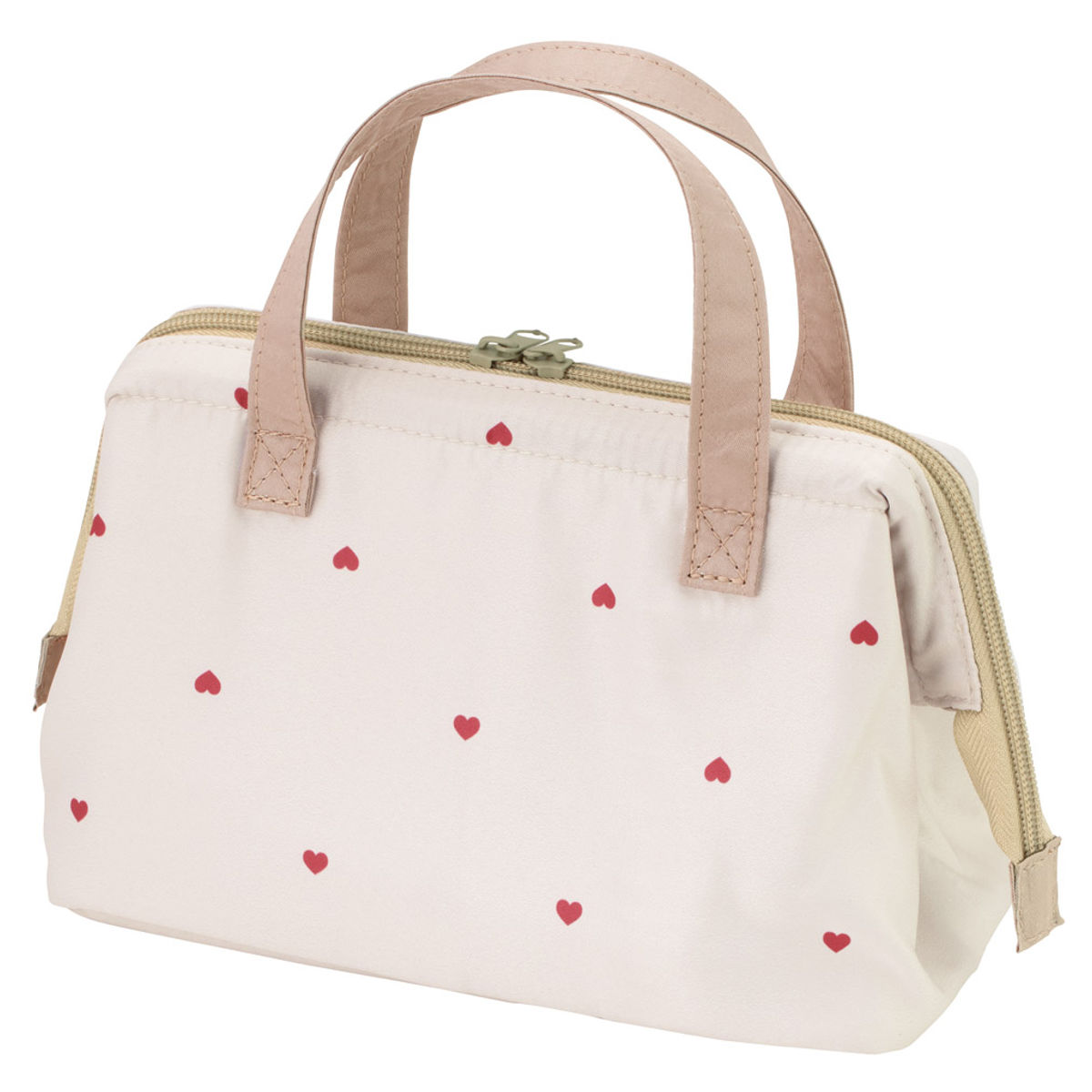 ボストンバッグタイプのランチバッグです。ファスナーは開閉しやすいWファスナーを使用しています。バッグの取り出し口はがま口型になっており、大きく開くため、物の出し入れがスムーズに行えます。