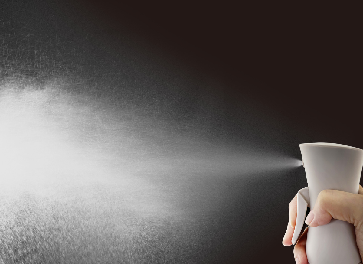 普通のスプレーのように何度もトリガーを引く必要がない蓄圧式です。ワンプッシュの操作で超微細な霧がムラなく長い間広がります。