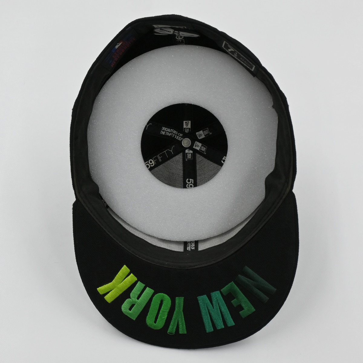 | 発泡リングを帽子の中に入れる。 ※発泡リングが大きい場合は、ハサミでカットして調節OK。 | 浮きの下側に防止のつばを差し込み、全体の形を整える。 |